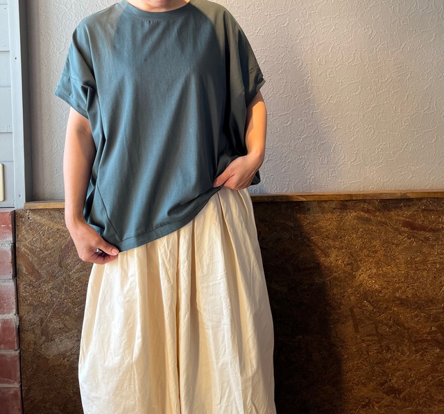 ″さらり″と軽く、滑らかな肌触りの天竺素材を使用した、立体感のあるシルエットのBIGプルオーバー。天竺素材は、しなやかに空気を含んだような風合いで、素肌を優しく包んでくれます。 ゆったりしたサイズで身体のラインを拾わず、暑い季節も快適に、変形スリーブ(バンザイスリーブ)が程良いアクセントになります。 ゆるやかなヘムラインの裾がスッキリとした着丈でボトムスのシルエットも選ばない万能Tシャツです。 身丈 61cm 身幅87cm 裄丈42cm 裾幅57cm 袖口幅14cm レディースフリーサイズ Quality:コットン100% 色: ever green,sand beige,off white,charcoal gray MADE IN JAPAN モデル身長156cm NEW BRAND‼︎ biollne(ビオルネ)のアパレルラインharmonie(アルモニ)ソックスと同じ日本製に拘った大人カジュアルなブランドです。