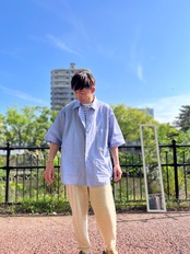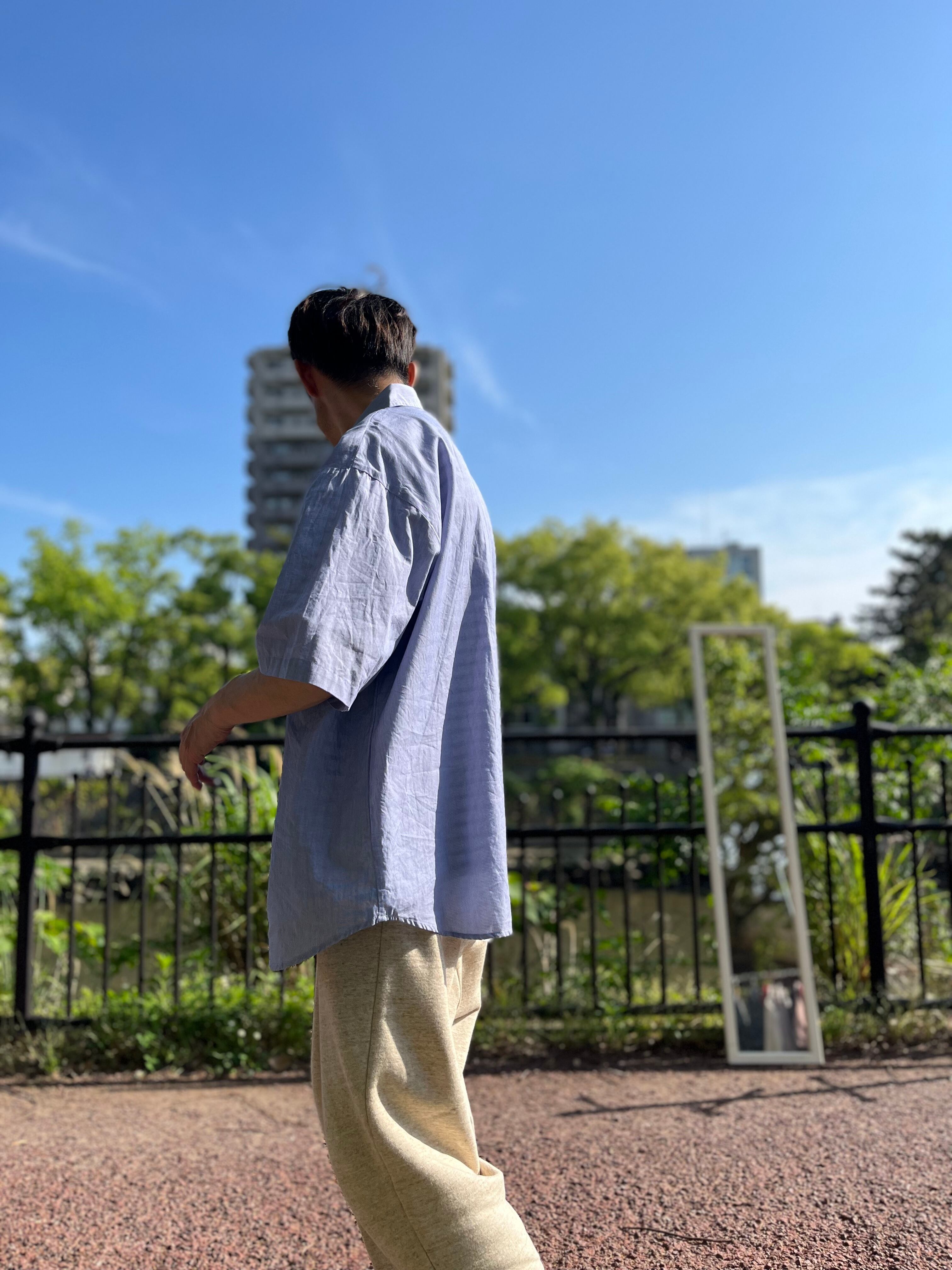 素材にはハリ感と軽さが際立つHarelineStripeのシャツ地を使用しています。