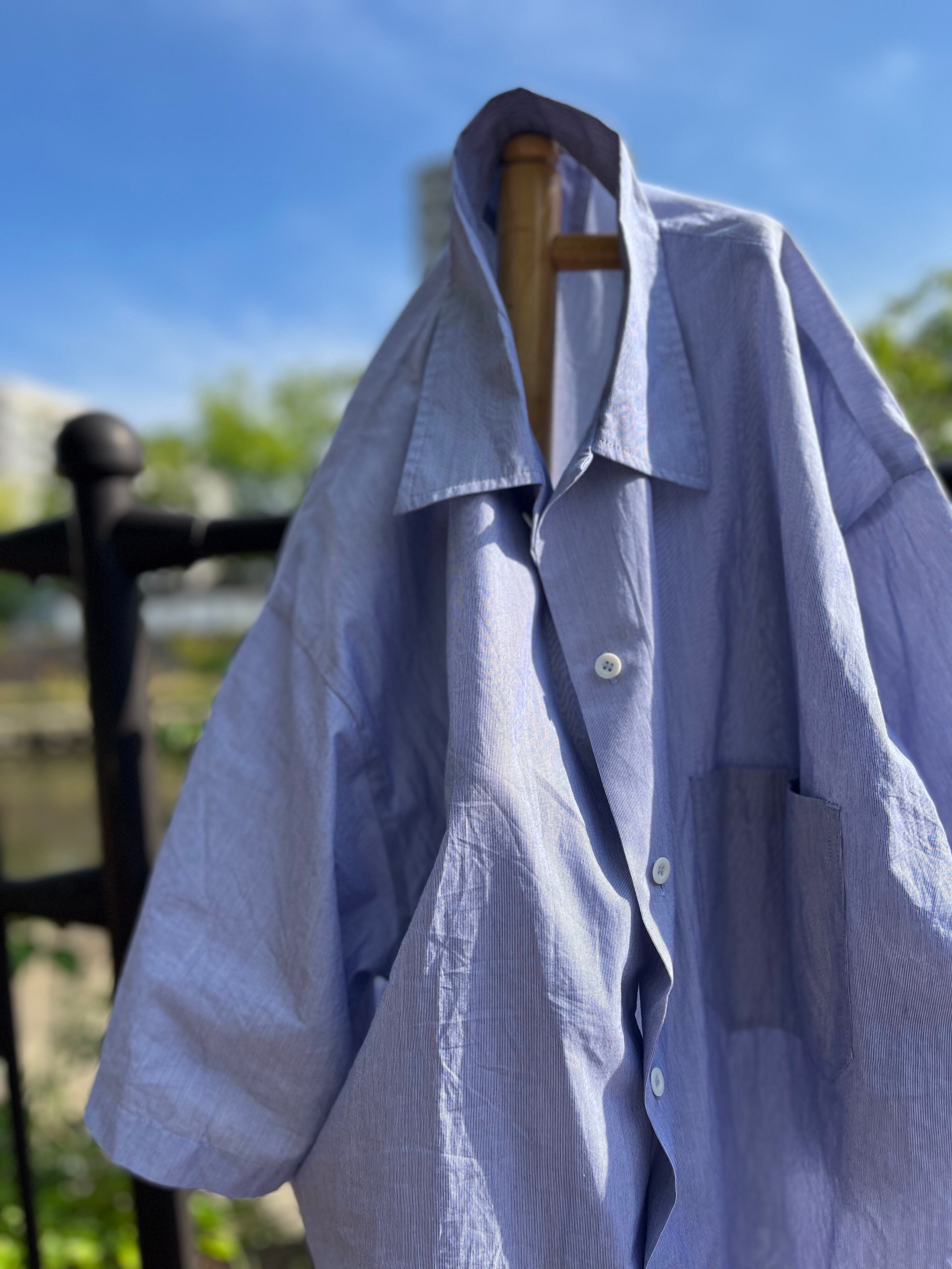 ビッグシルエットのヴィンテージをベースにしているがパターンニングでバランスを取ることで、どこかドレッシーでジャケットのような感覚で着用できるアイテムです。前シーズンからパターンを変更しており、これまでのビッグシルエットのワイドさも感じながら少しスマートになったシルエットになります。