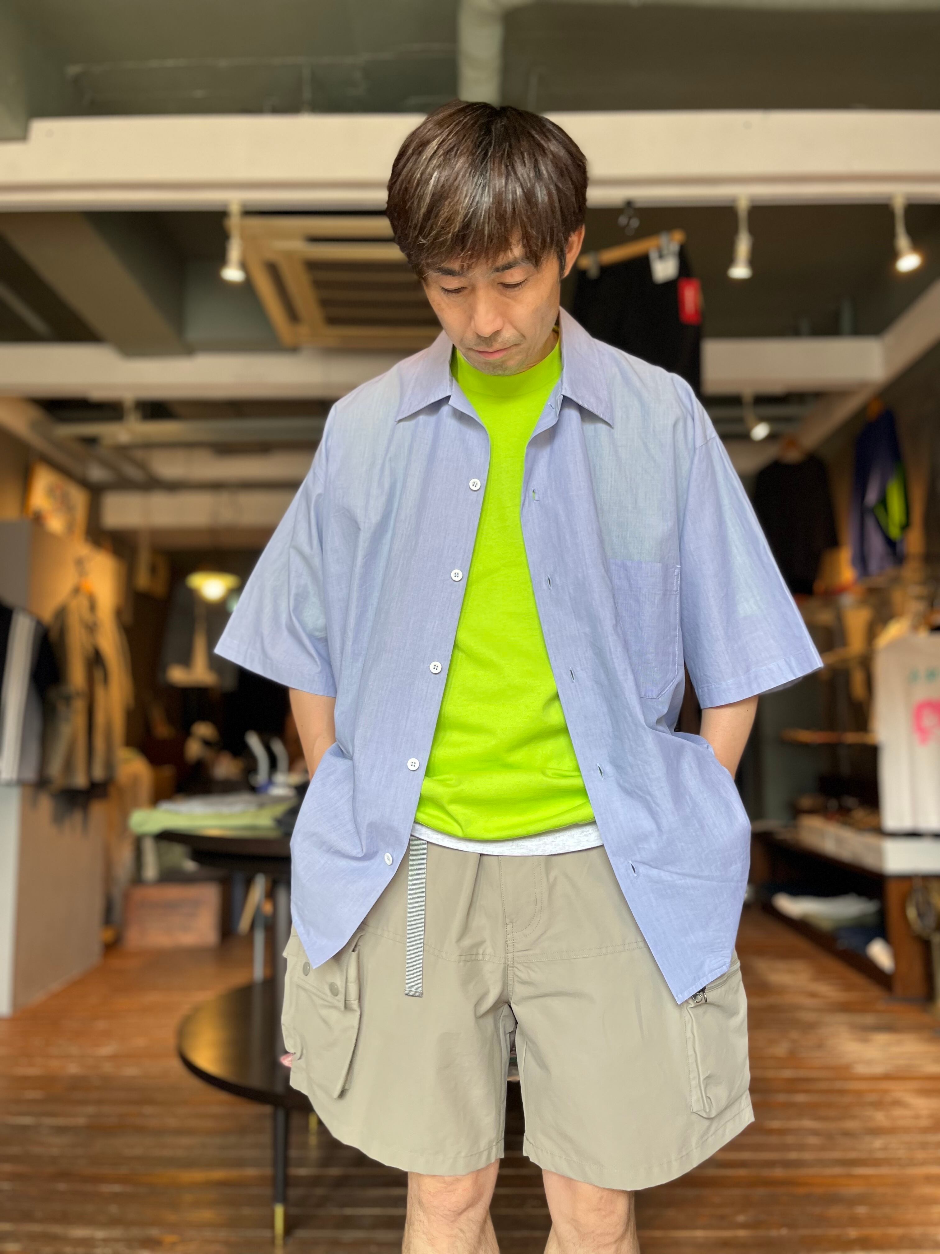 シルエットはリラックス感のあるワイドフィットで仕上げました。ワンポイントになるイニシャルロゴワッペン付き。ワイドなサイズ感と、少し長めの袖丈がポイントです。