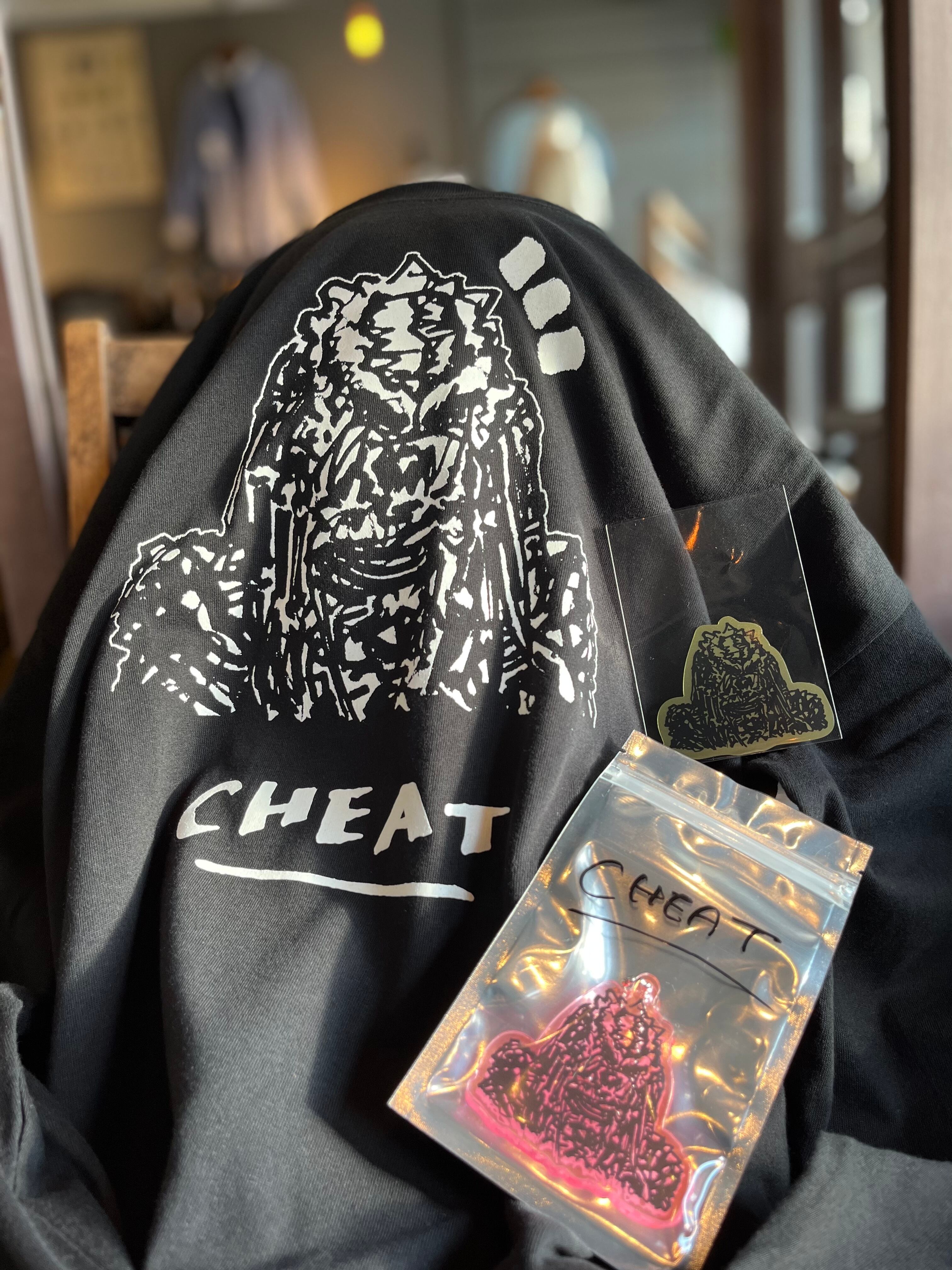 白と黒のモノトーンがより恐怖を引き立てるCHEATロンTも入荷‼︎暗闇で光る蓄光仕様で夜道も安心ですね。