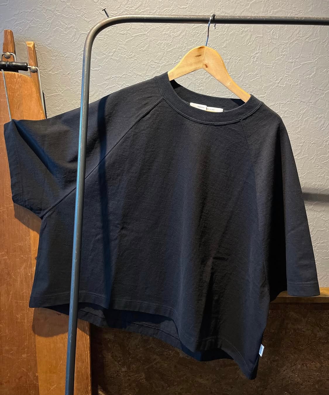 ヴィンテージ天竺は綿100%の優しい風合いと、洗いをかけたような表面のムラ感が表情のある柔らかく気持ちの良い素材。袖が広く、肩から腕にかけてゆったりとしたデザインが快適なサイズ感を与えてくれます。