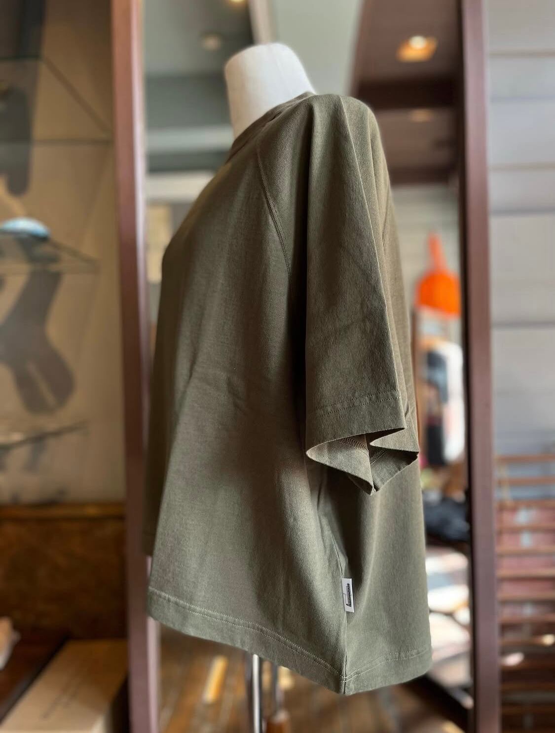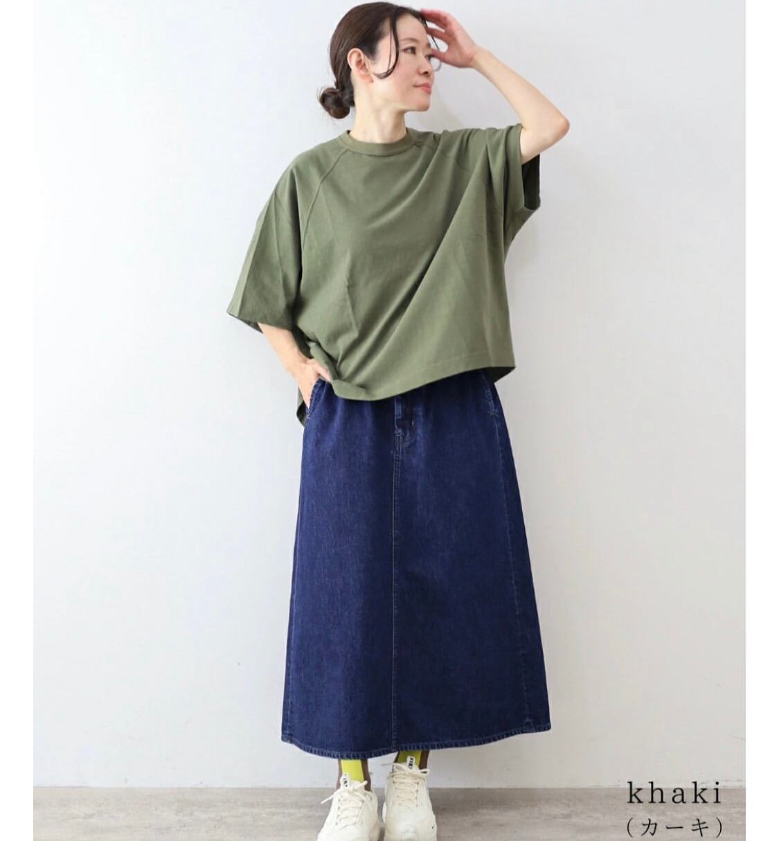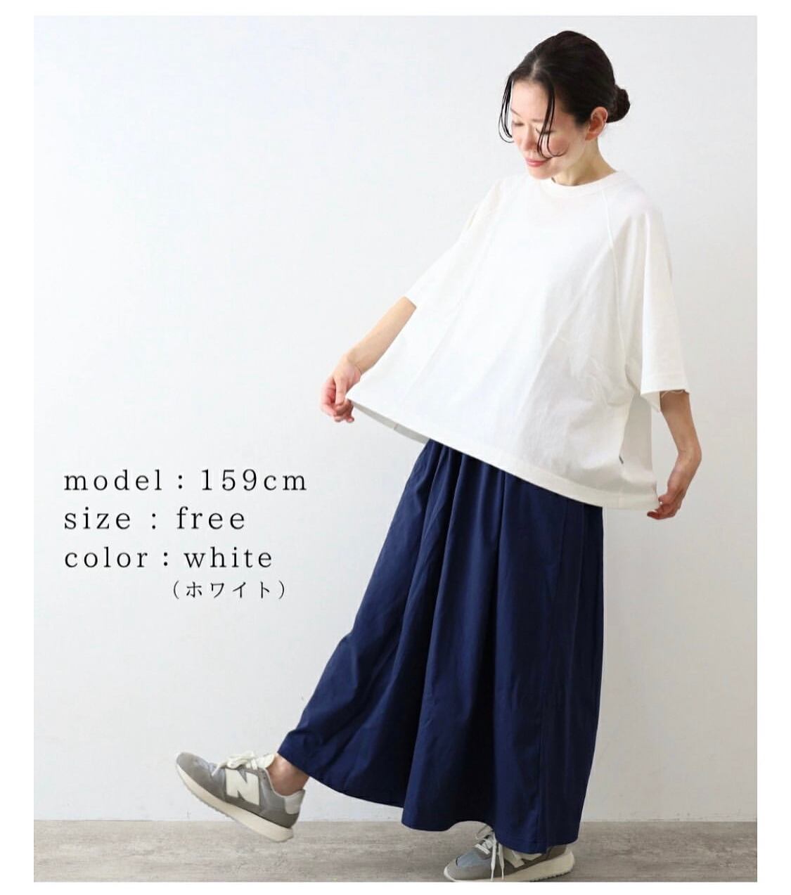 ほどよい厚みとやわらかさを兼ね備えた、綿100%の天竺編みカットソー生地。袖口が広いBIGシルエットで涼しく体型カバーも叶います。透け感が少ない生地なので安心感があり、シンプルなデザインで着回し抜群のアイテムです。