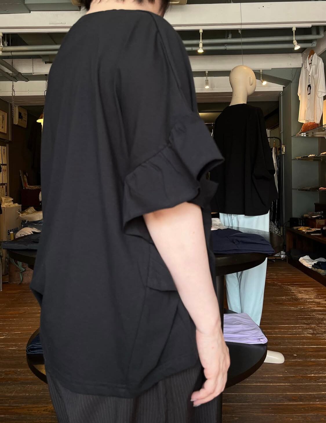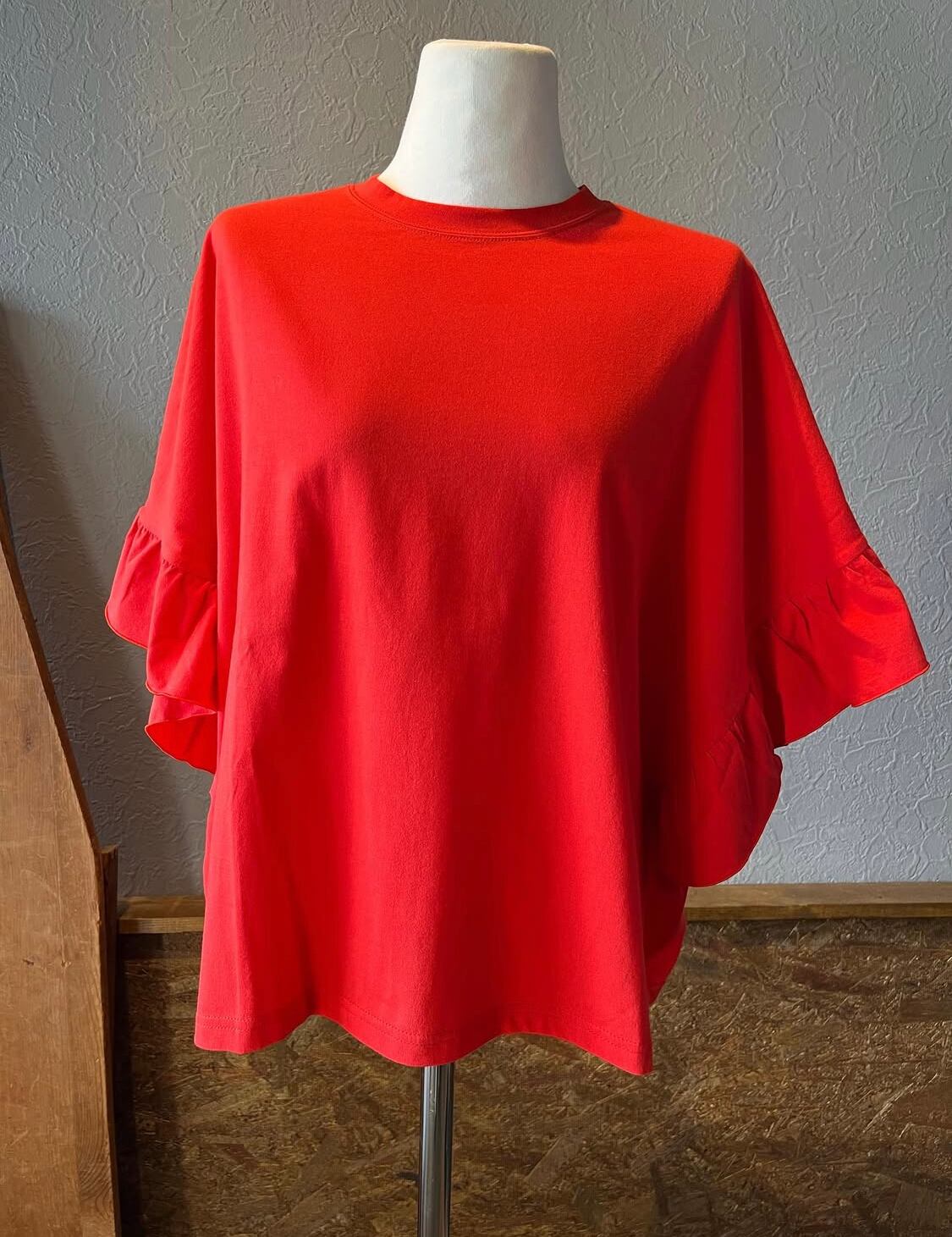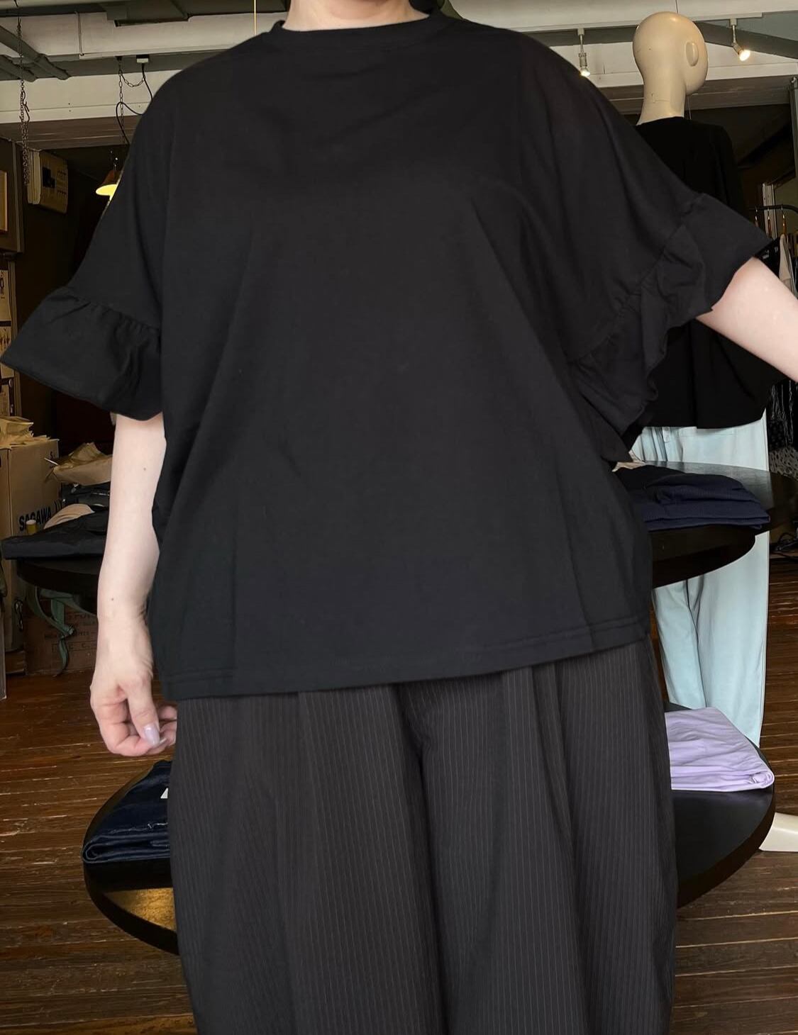 ふんわり軽やか、それでいてしっかりと編まれた度詰め天竺綿100%のフリルTシャツ。
