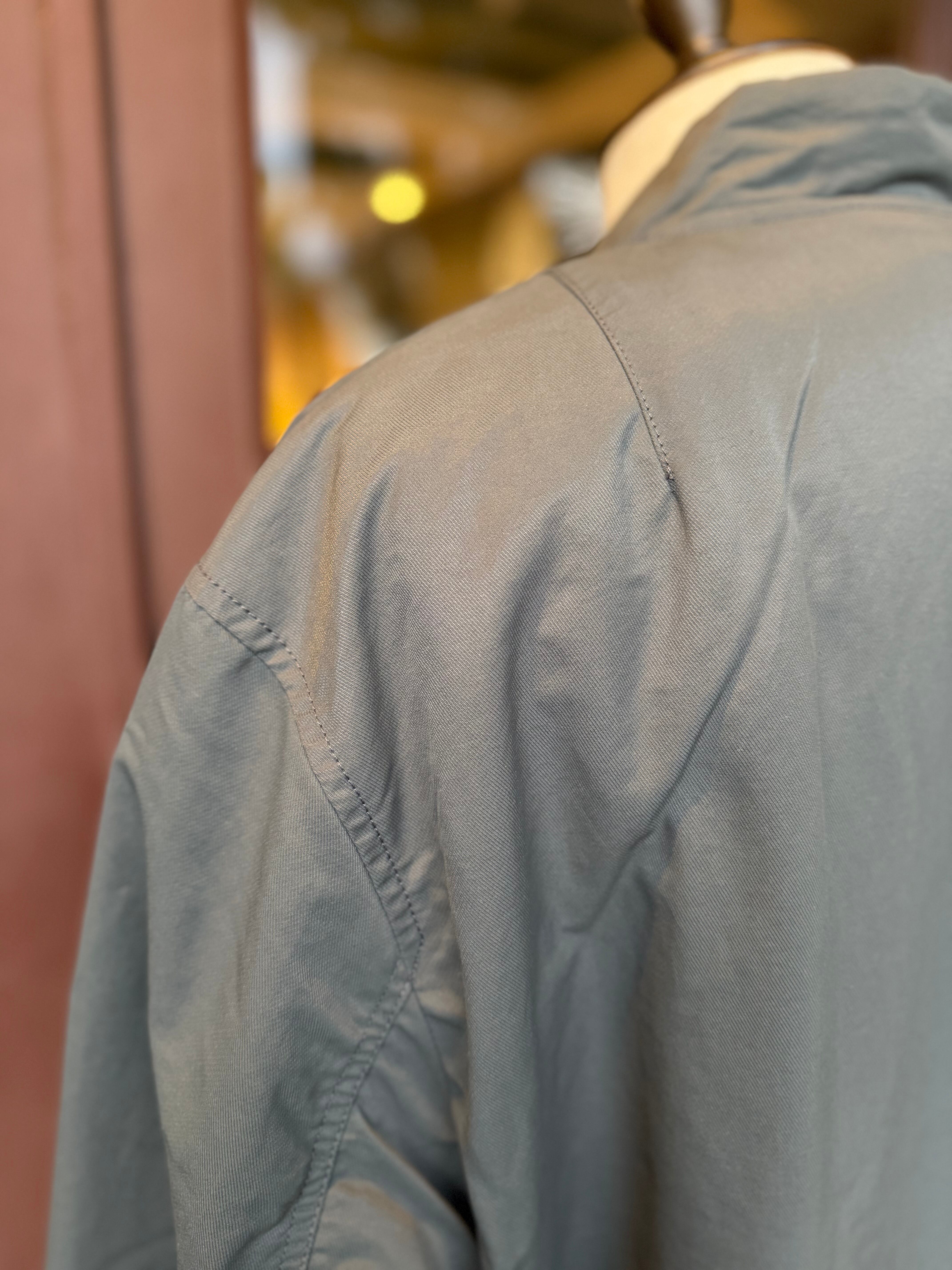 マットな生地感、中綿のボリュームも抑えられゴリゴリなミリタリーコーデにならないので安心感があります。斜めカッティングなポケットのフラップも新鮮です。また、襟がリブではなくボディと同じコットンナイロン。品がありながらパーカーなどと重ねた時もごわつかず快適な着心地に。
