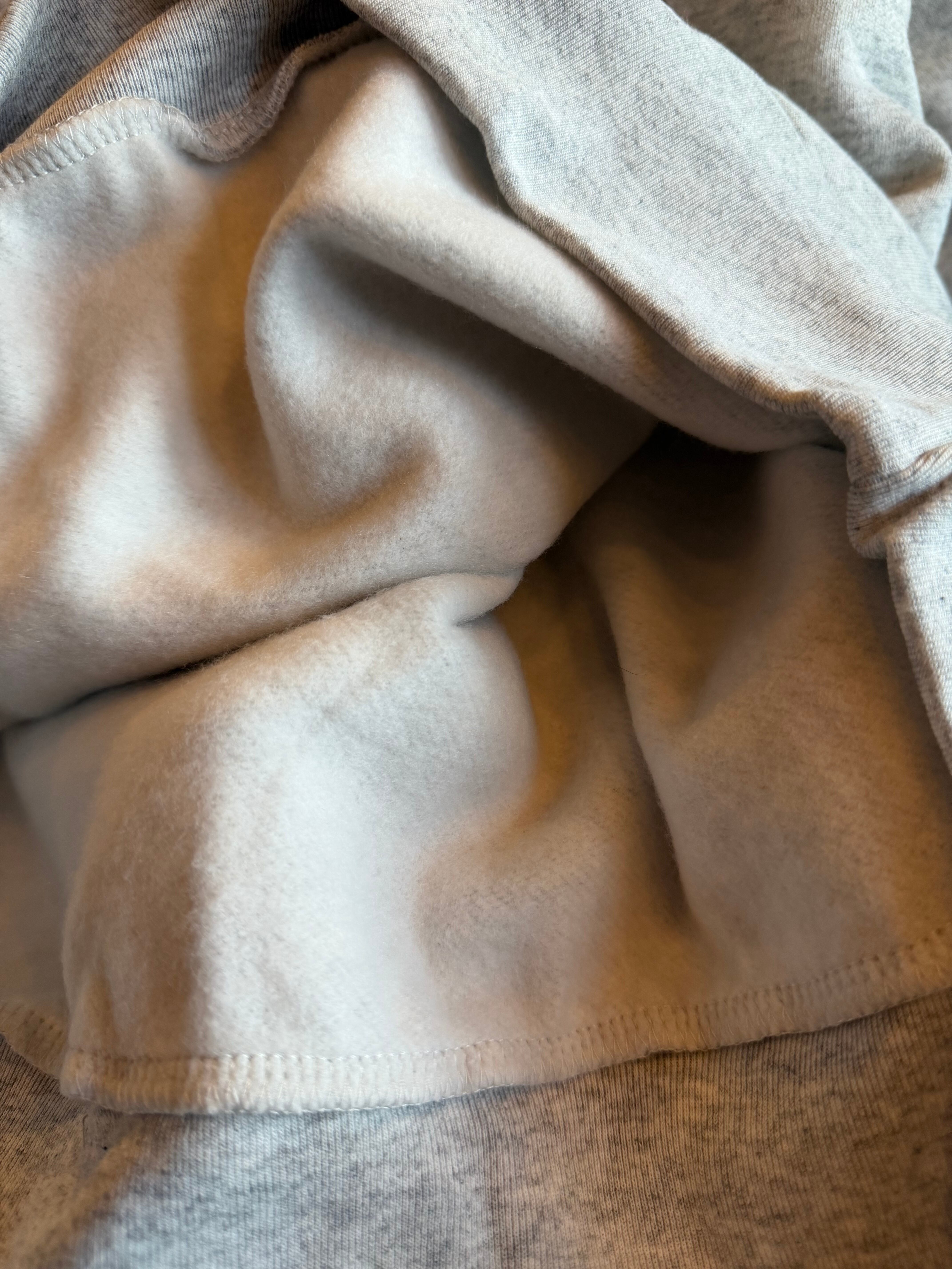 見た目よりとても柔らかく、スウェット特有のごわつきや厚みも感じないのでロンT感覚でサラッと着ることができます。コスパも素晴らしい。