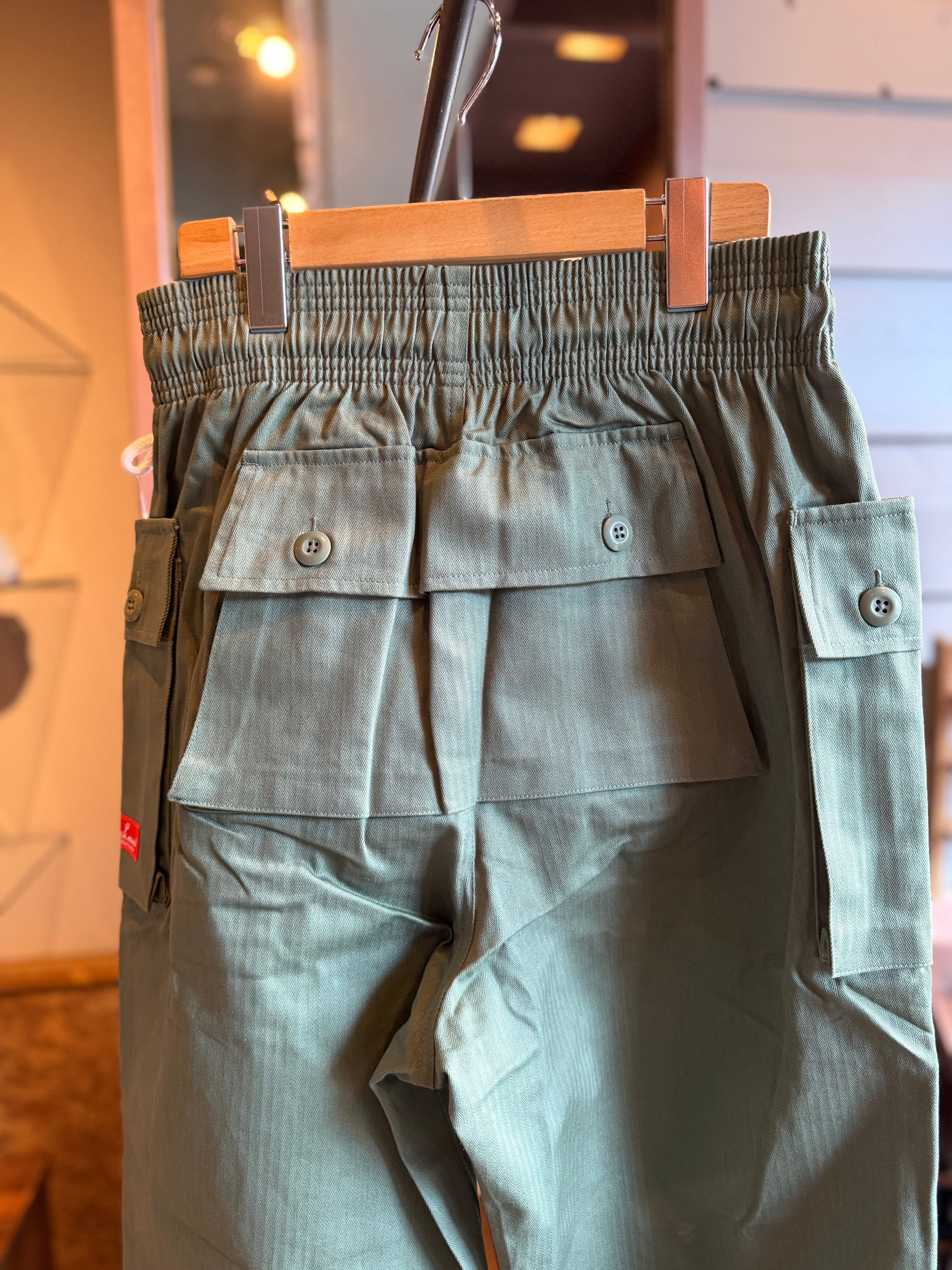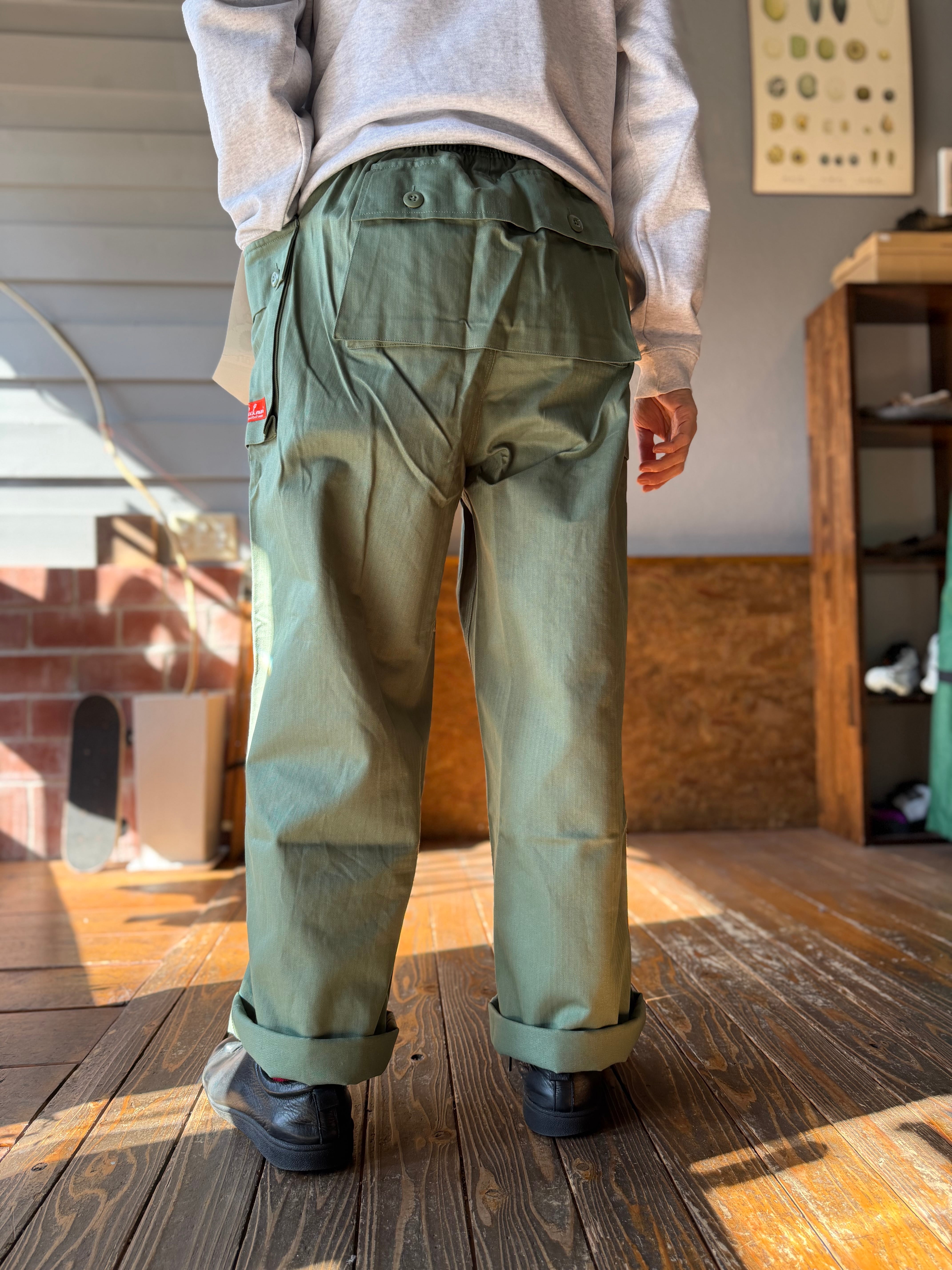 特徴的な背面の大きなフラップポケット、腰を包み込むようについたサイドのカーゴポケットと男心をくすぐるディテールはレプリカやいろんなブランドさんなど何年も探していたのですが、なかなか見つからず諦めかけていたところ先日cookmanのメーカーさんからのオススメで仕入れることができました!