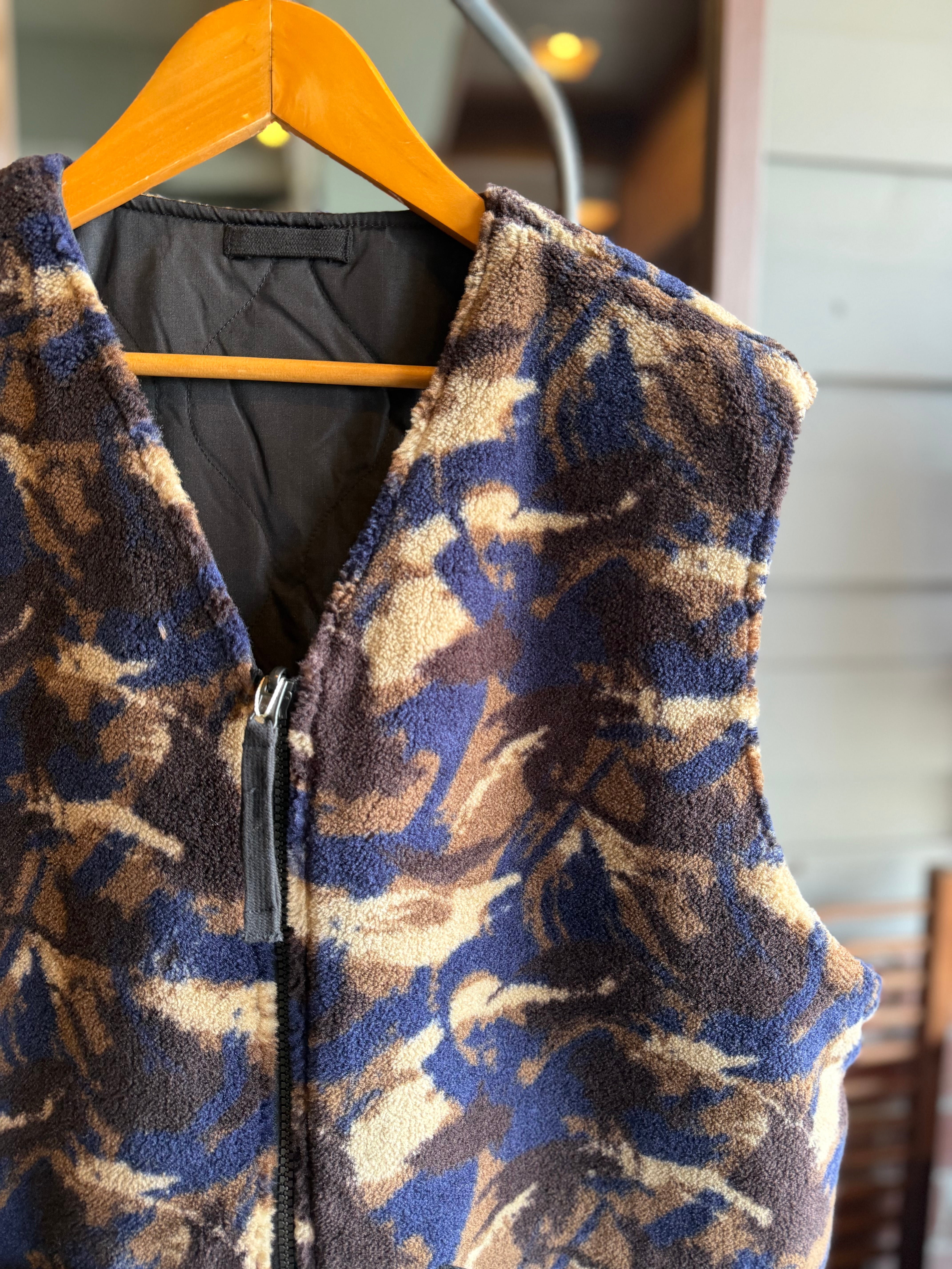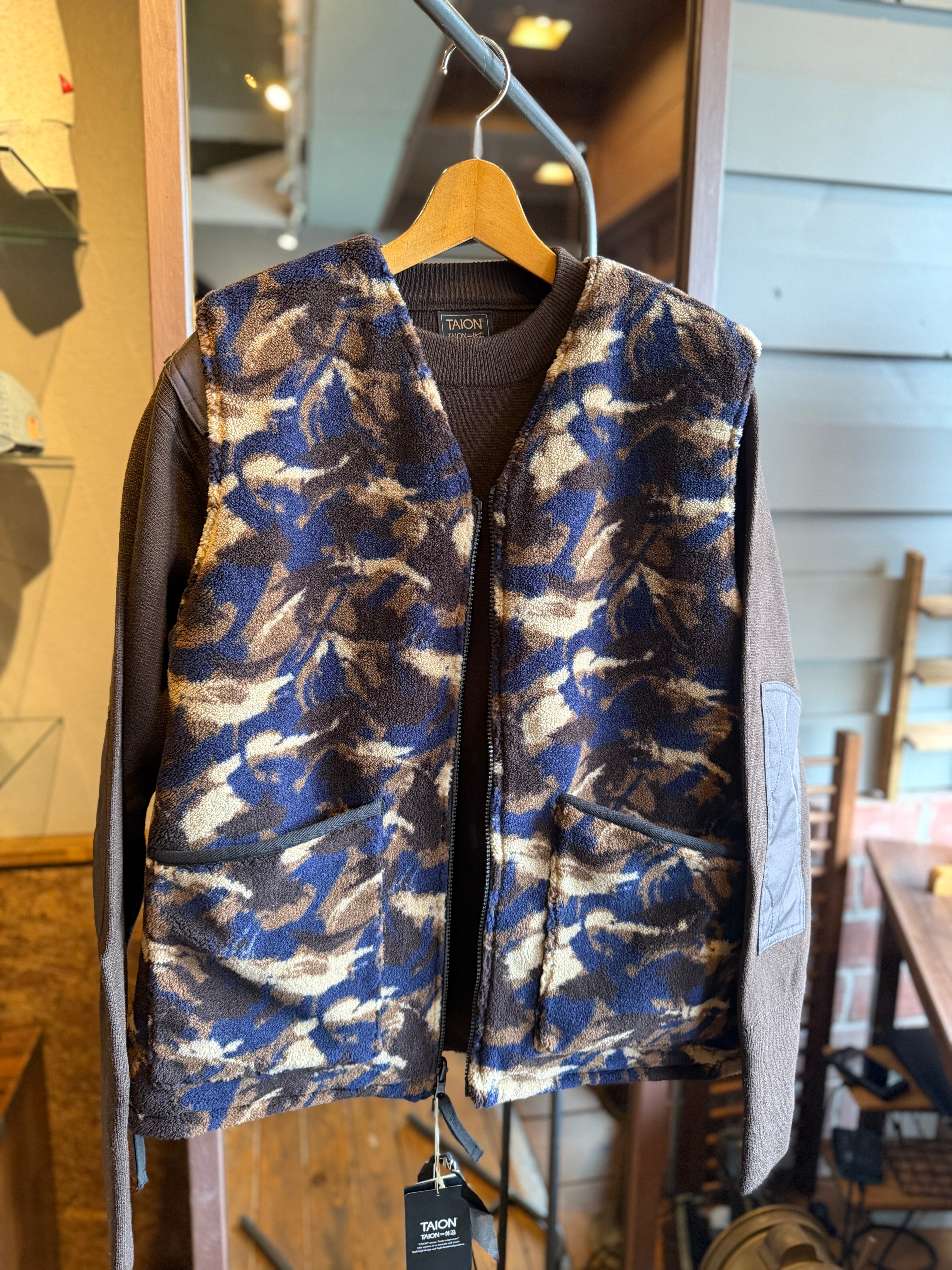 TAION/ミリタリーリバーシブルVネックボアダウンベスト/ブラック×ペイントカモ