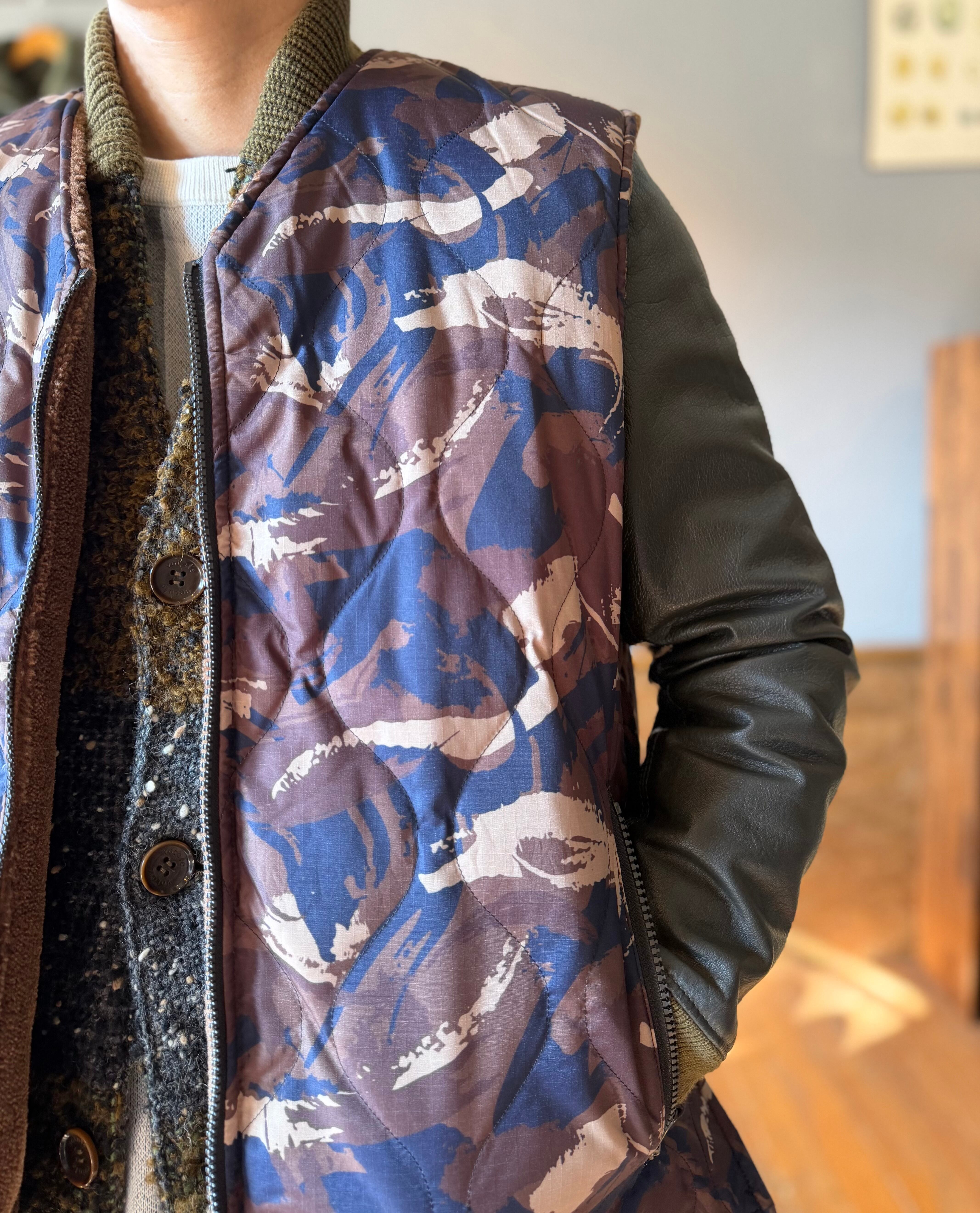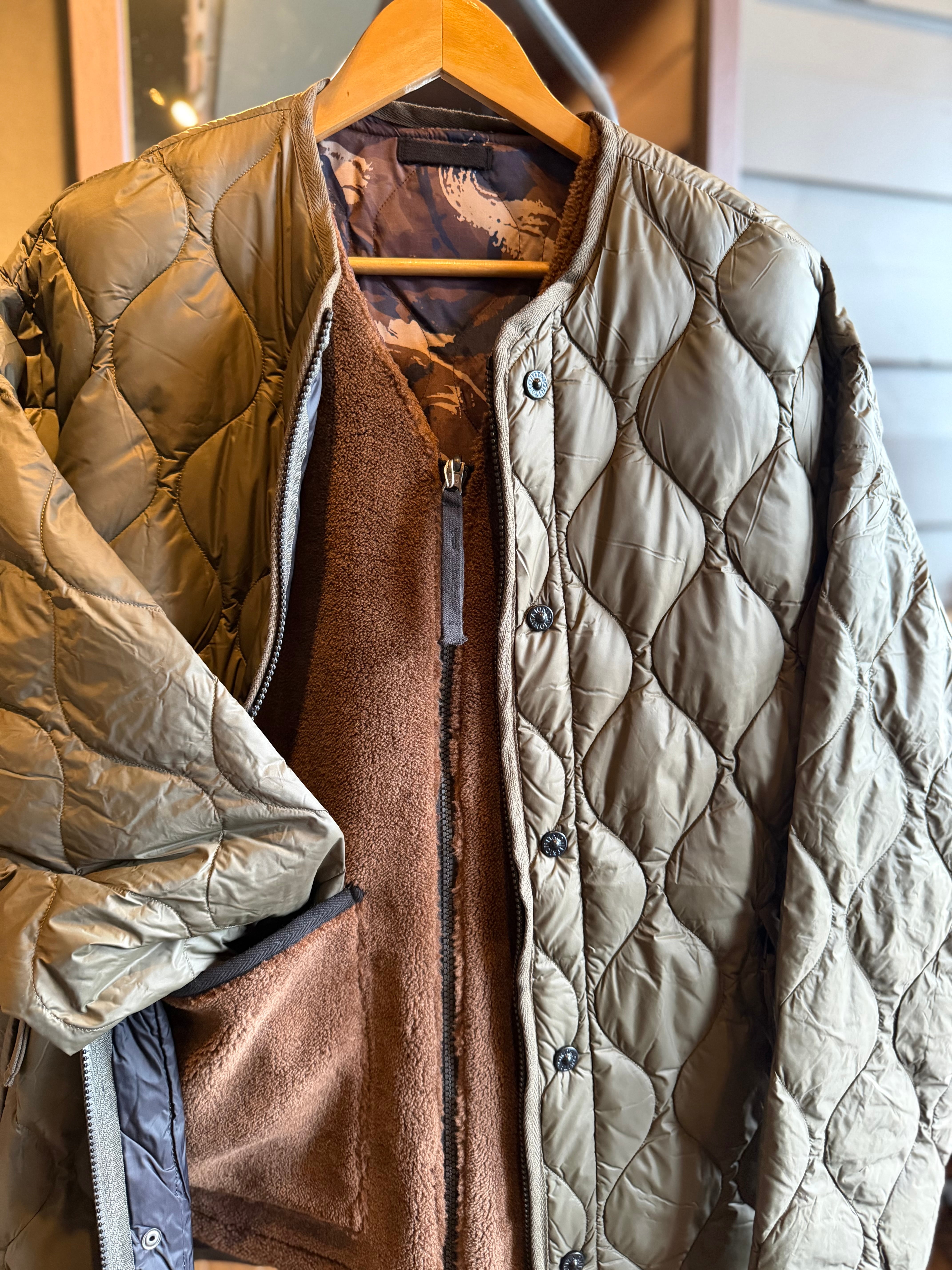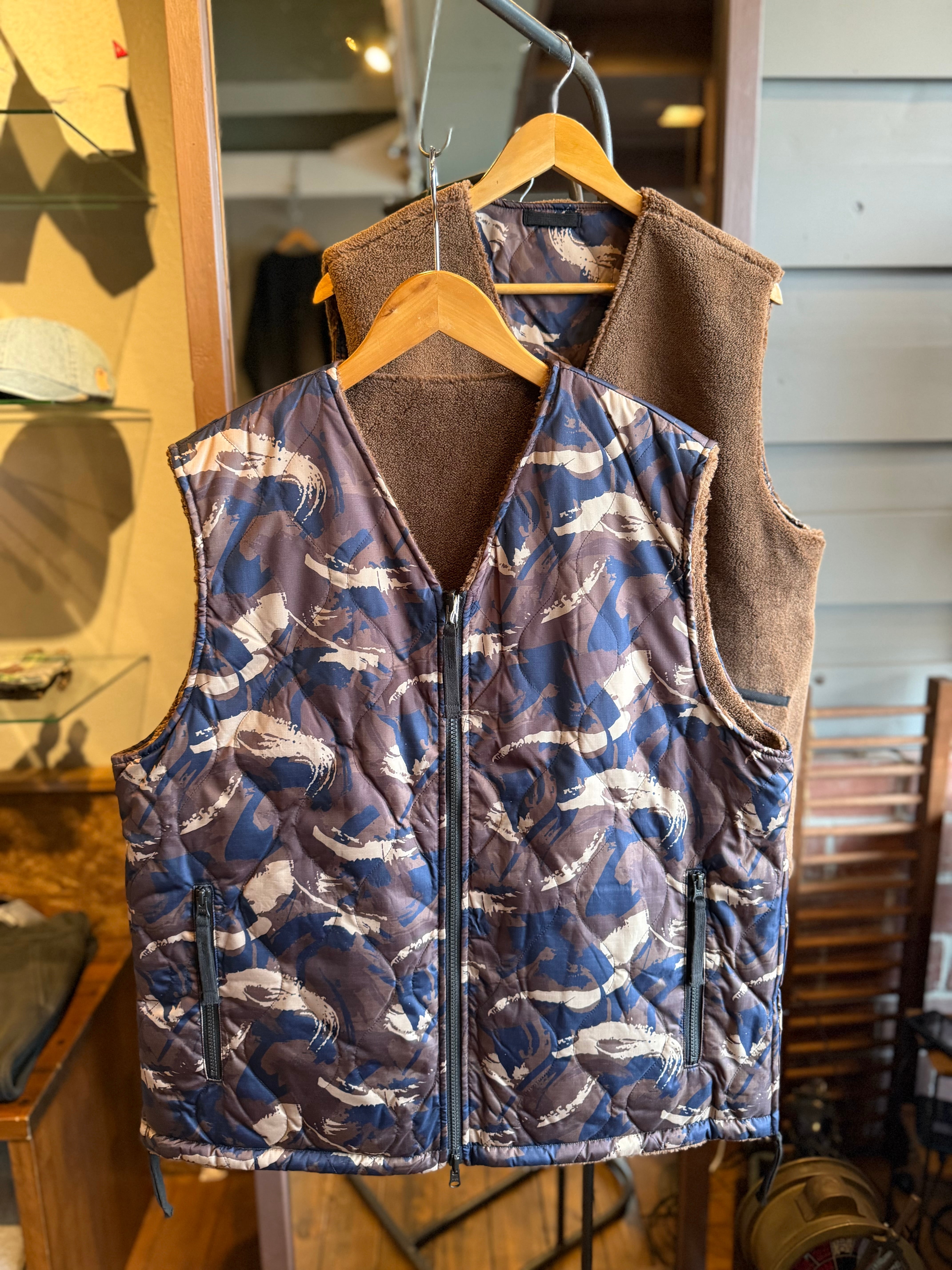 TAION/ミリタリーリバーシブルVネックボアダウンベスト/ペイントカモ×モカ