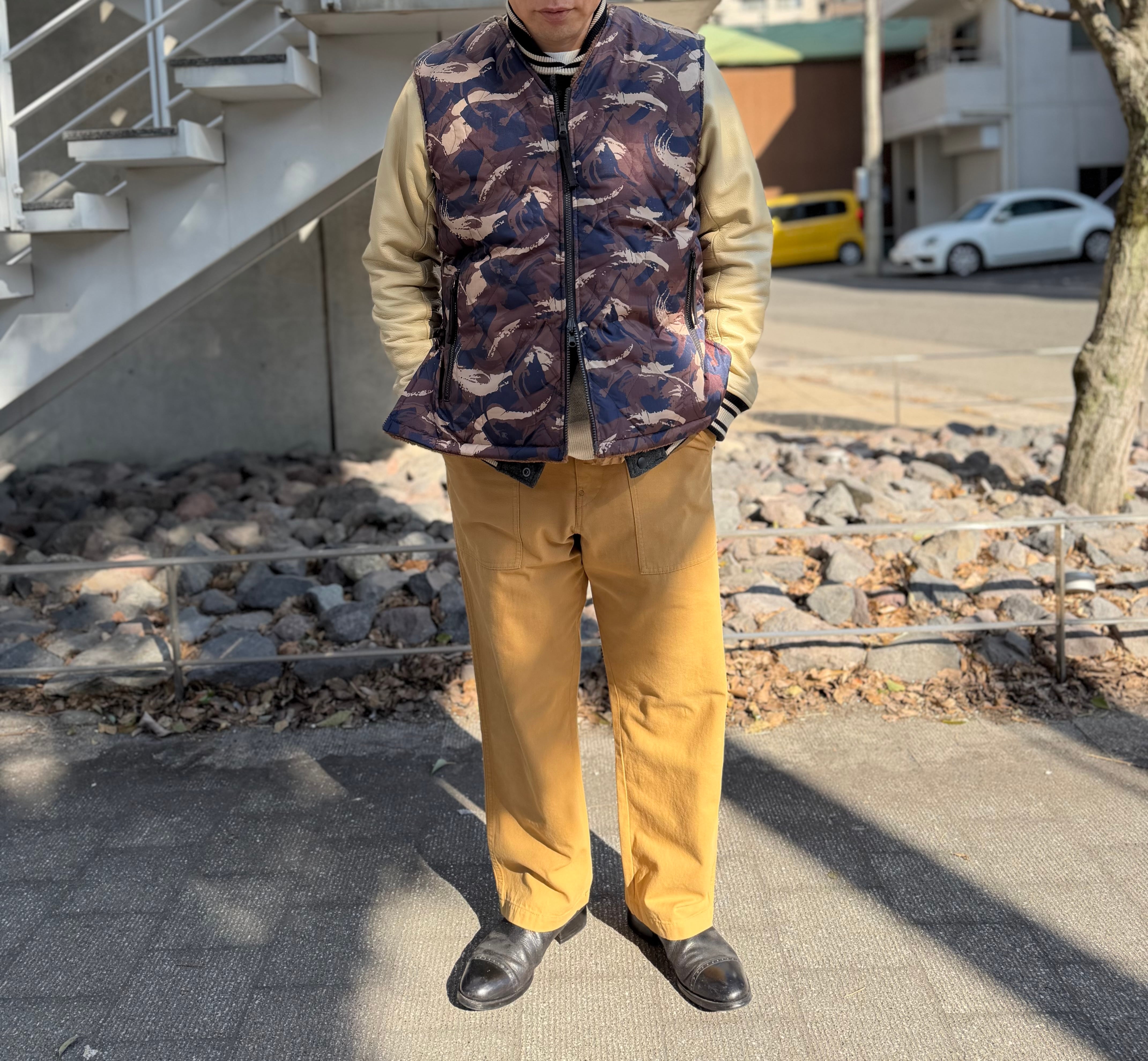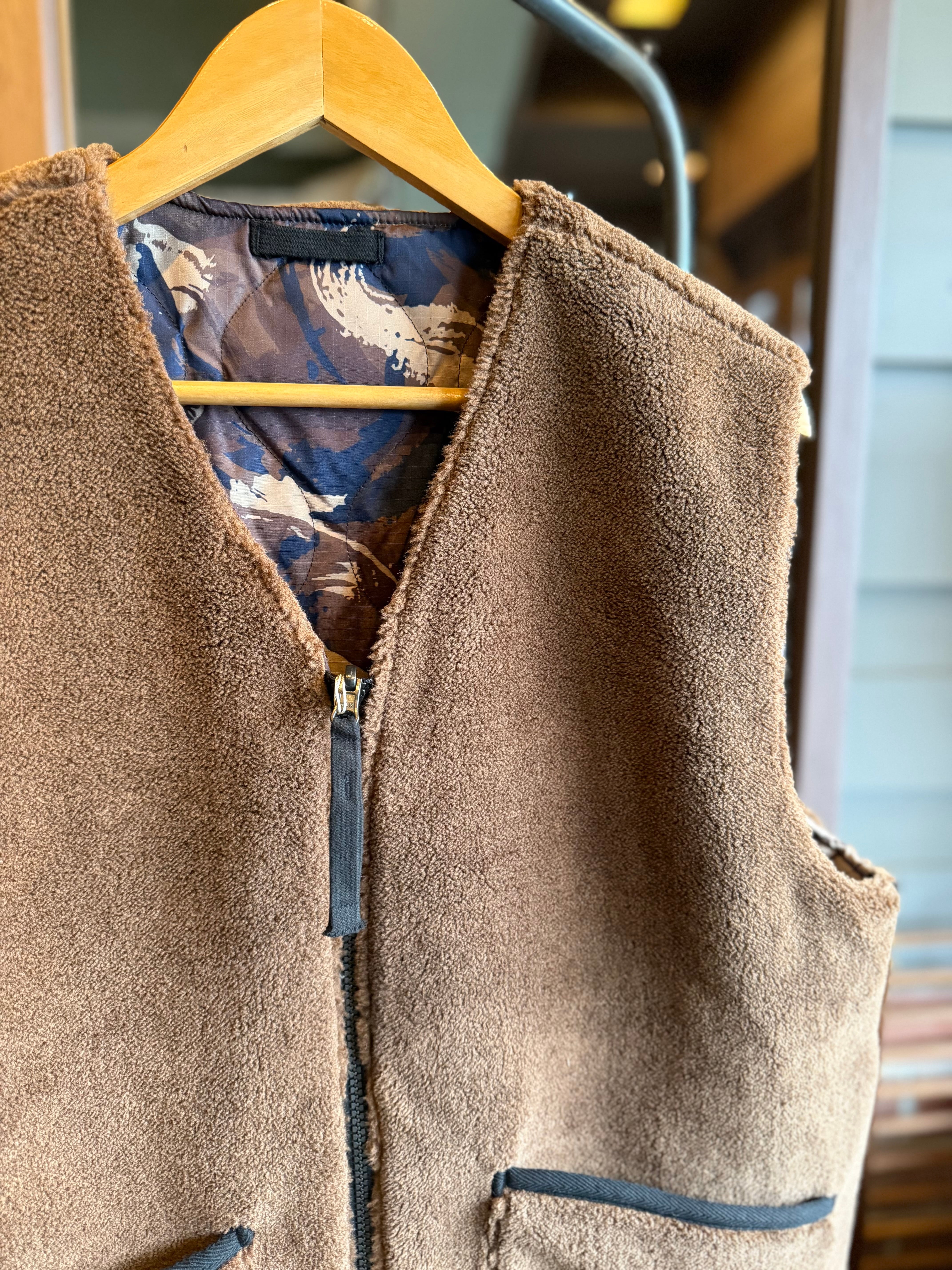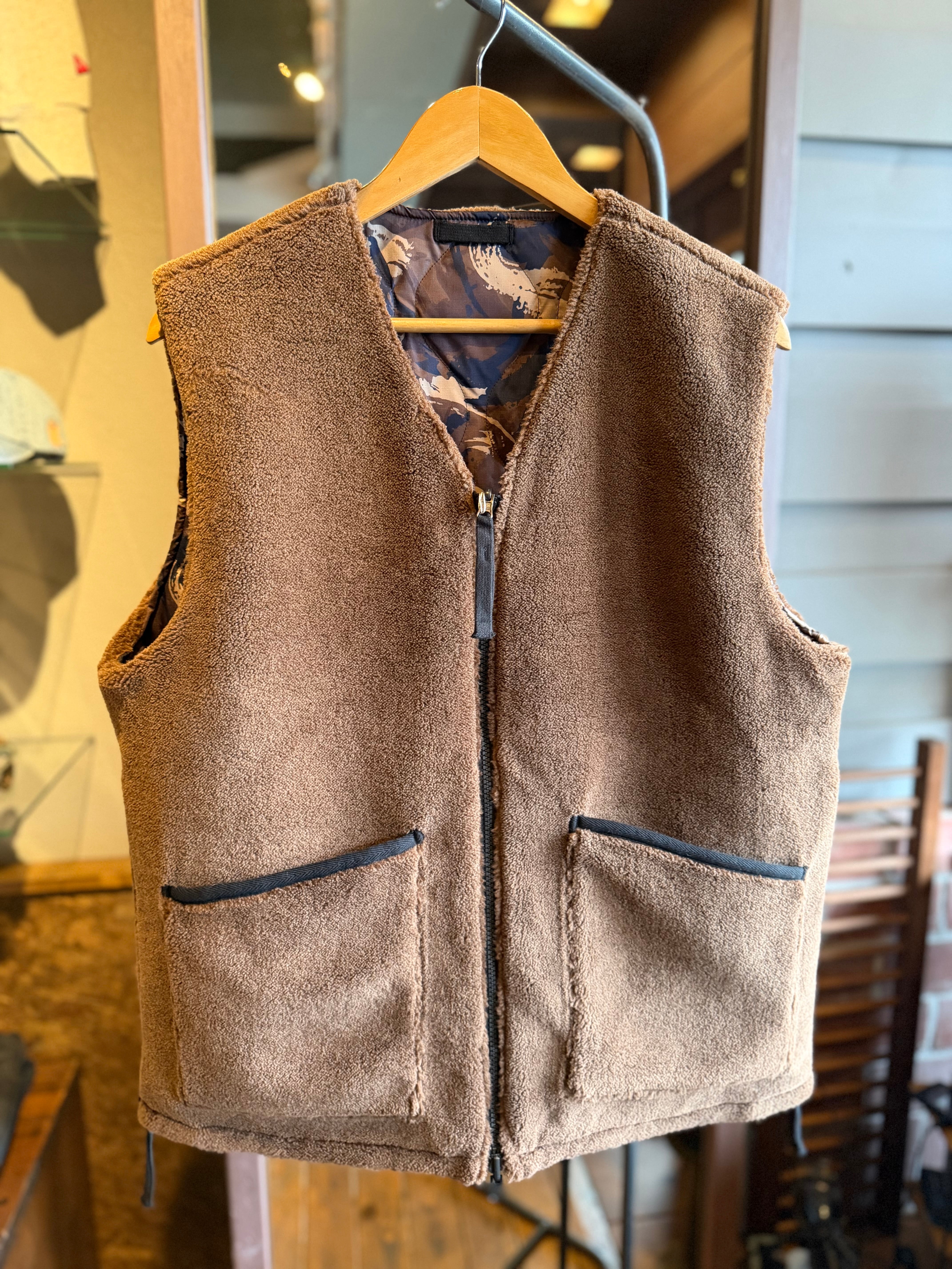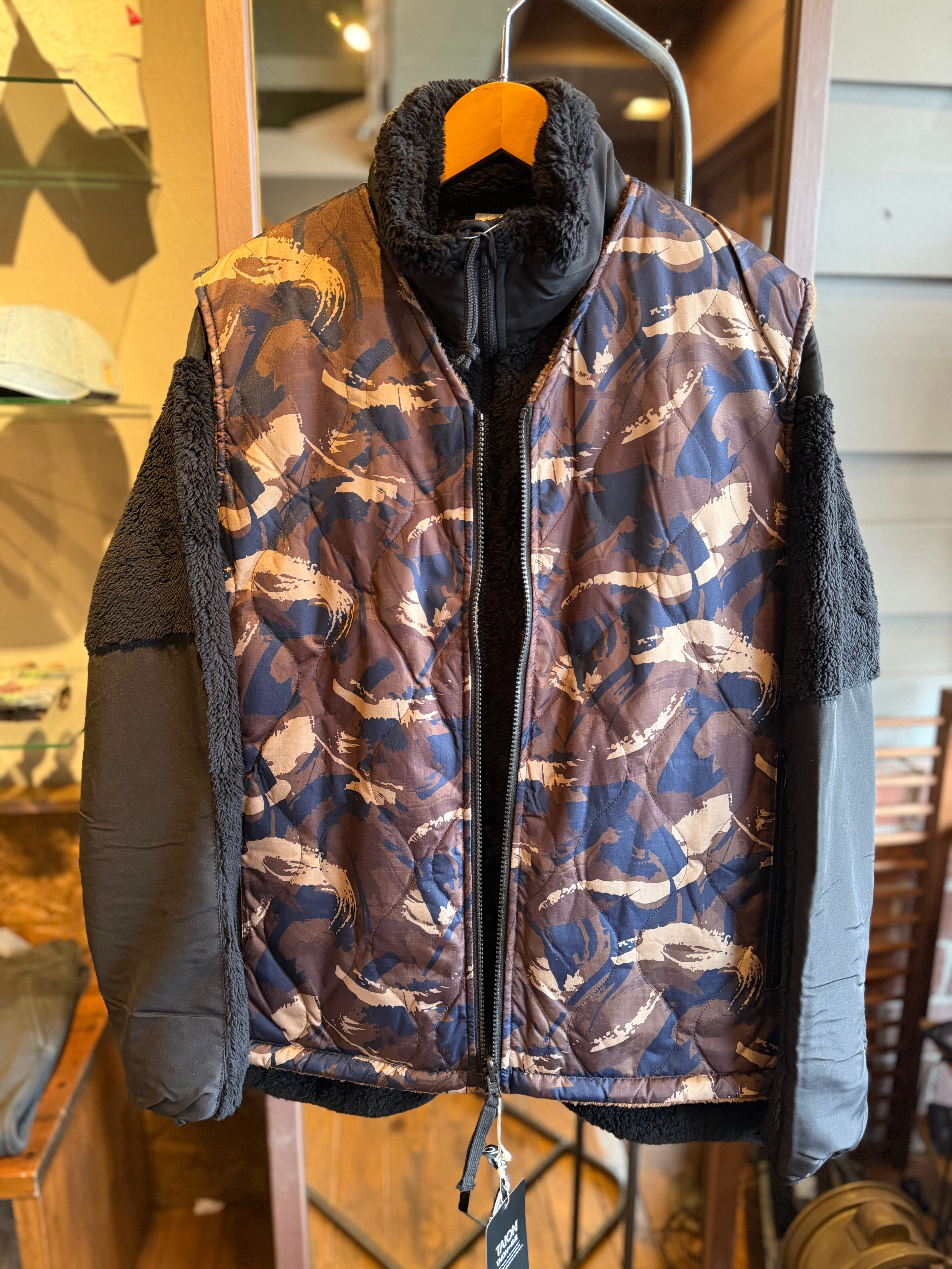 TAION/ミリタリーリバーシブルVネックボアダウンベスト/ペイントカモ×モカ