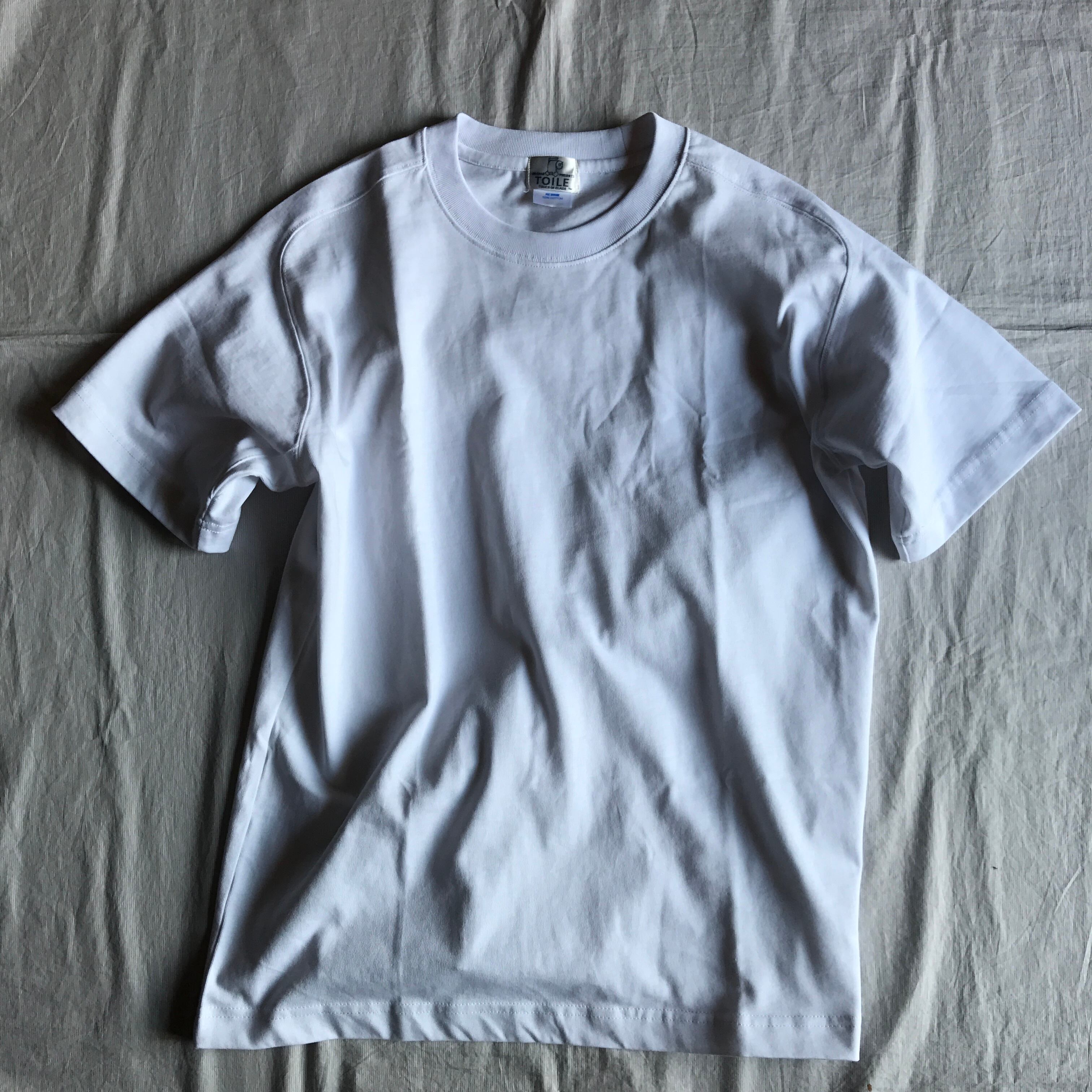 ミドルオンスの肉厚な生地は、世界最高峰といわれる新疆地方で作成。丁寧に編まれた柔らかな天竺に度詰め加工を施し、毛羽を焼きシルケット加工することでチープだけれでもゴワっとして慣れ親しんだUSコットンの厚み感と、シルクのように滑らかなギザコットンの良い所どりをしたような生地に仕上げました。