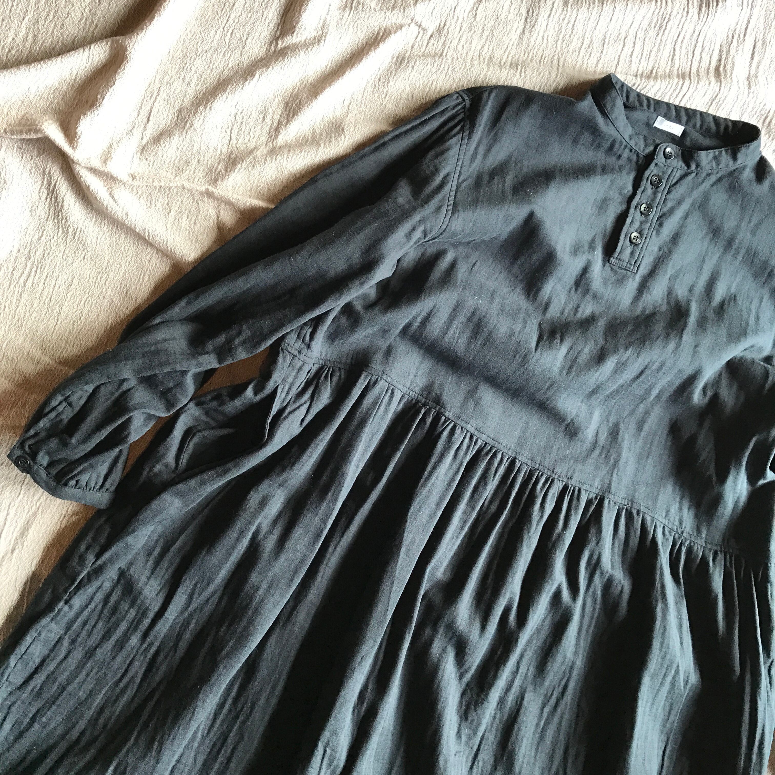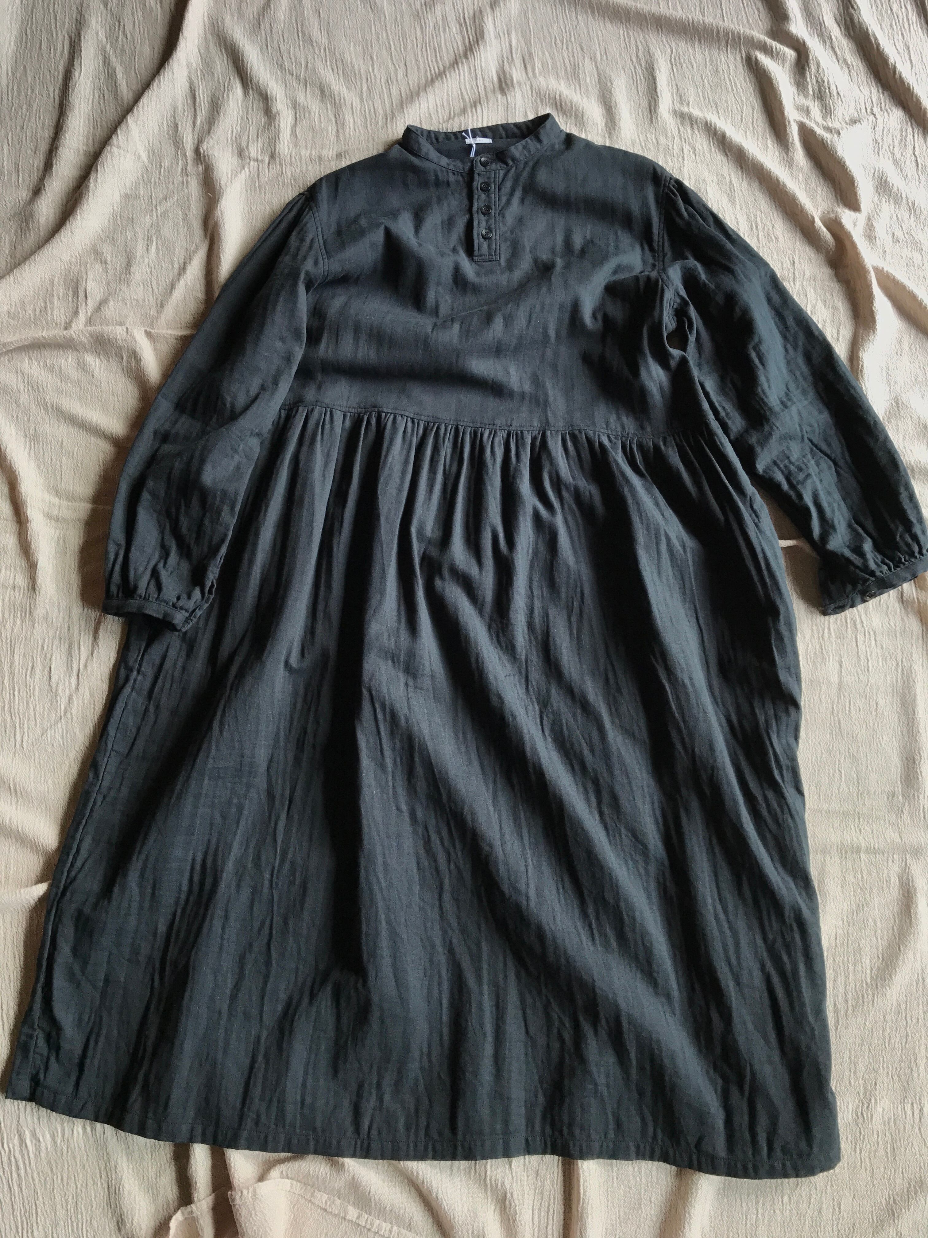 【ファイナルセール】コットンダブルガーゼバンドカラーワンピース(ichi)