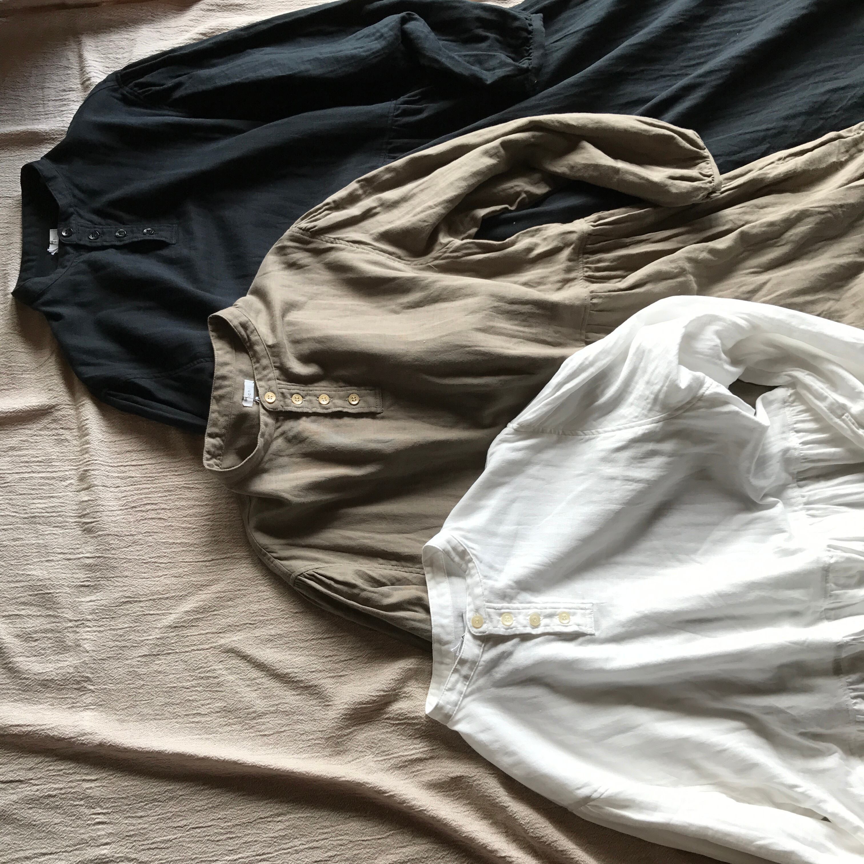 モノがたくさんあふれる時代だからこそ、モノを大切にしたい… 古き時代からあるモノ、自分たちの着続けたいモノをカタチにしました。 着て身体に馴染み、色あせていくことで自分らしい色に変わっていく服、 着続けることが喜びとなる服。 福岡での生活を拠点にして生み出されるデザインを、日本各地、世界で製造しています。 着て洗うことでテキスタイルの表情や風合いの変化を楽しめる1着。 生地の変化と同時に服が自分の身体のラインに馴染む心地よさも感じてください。