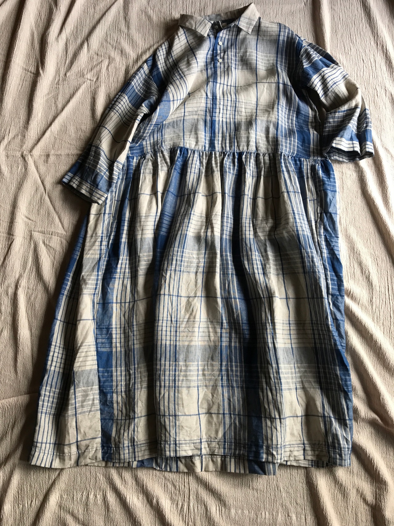 インディゴリネンチェックワンピース(ichi Antiquites)