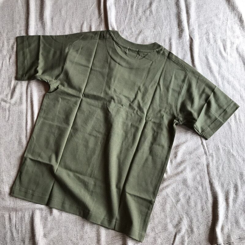 ミドルオンスの肉厚な生地は、世界最高峰といわれる新疆地方で作成。丁寧に編まれた柔らかな天竺に度詰め加工を施し、毛羽を焼きシルケット加工することでチープだけれでもゴワっとして慣れ親しんだUSコットンの厚み感と、シルクのように滑らかなギザコットンの良い所どりをしたような生地に仕上げました。