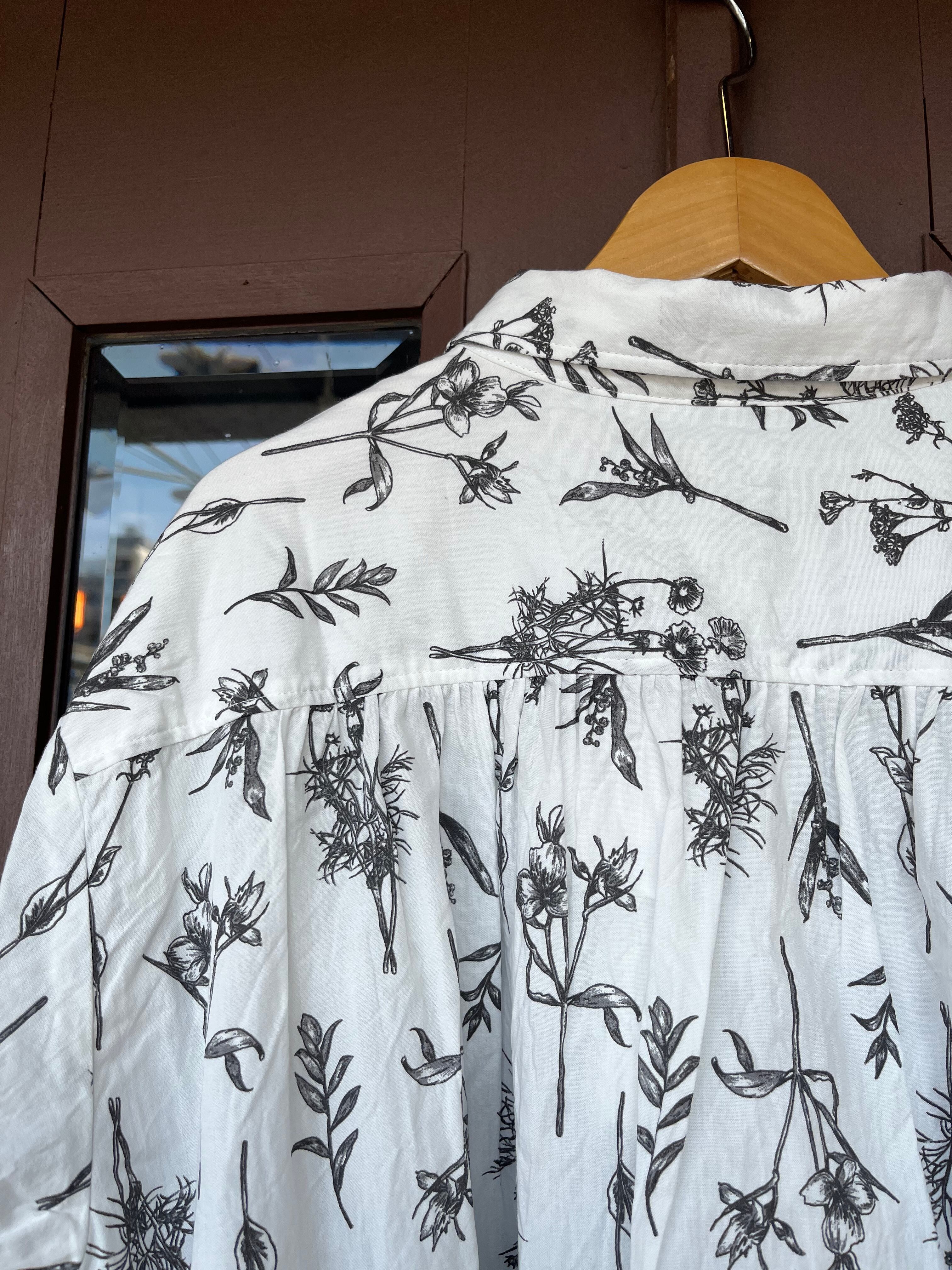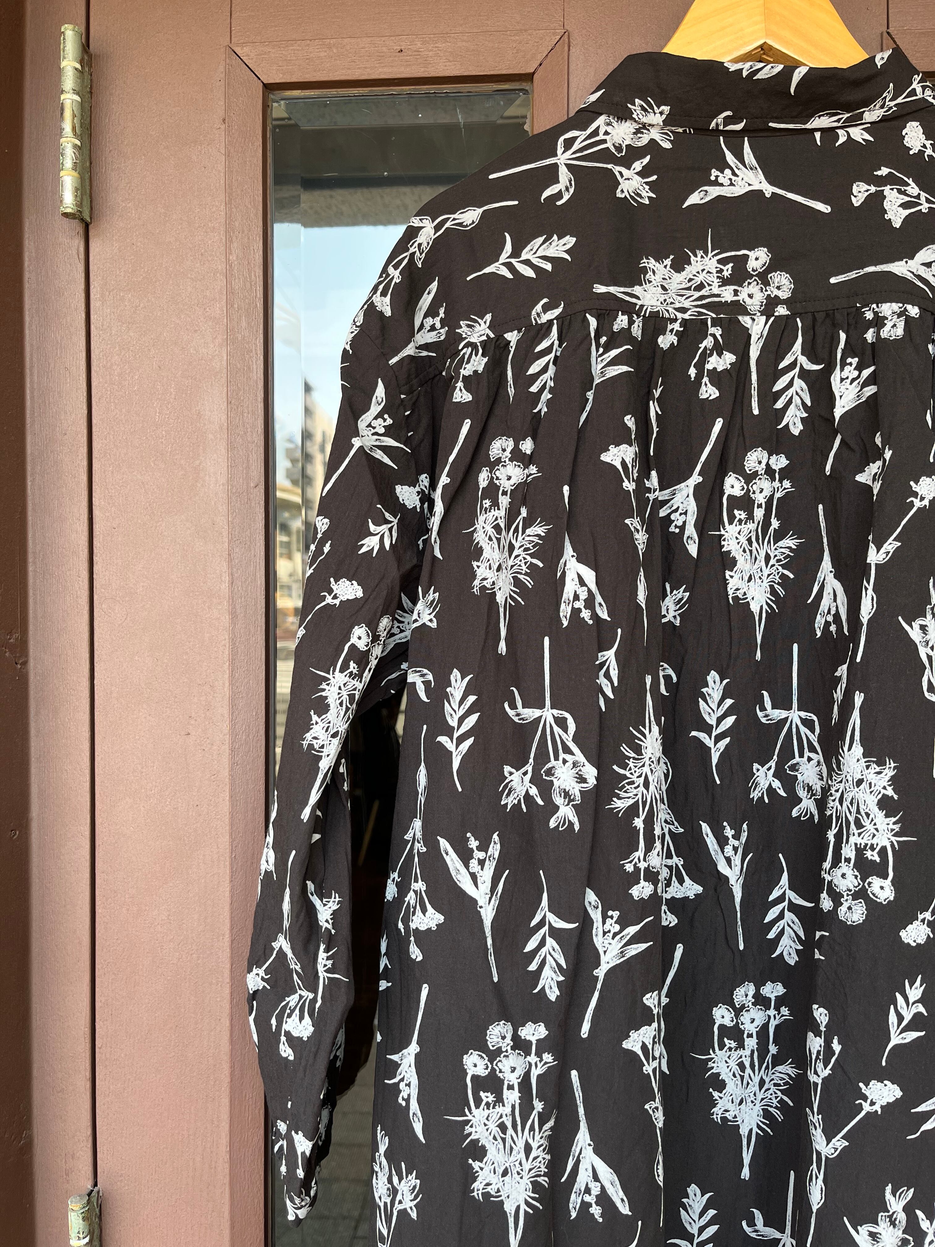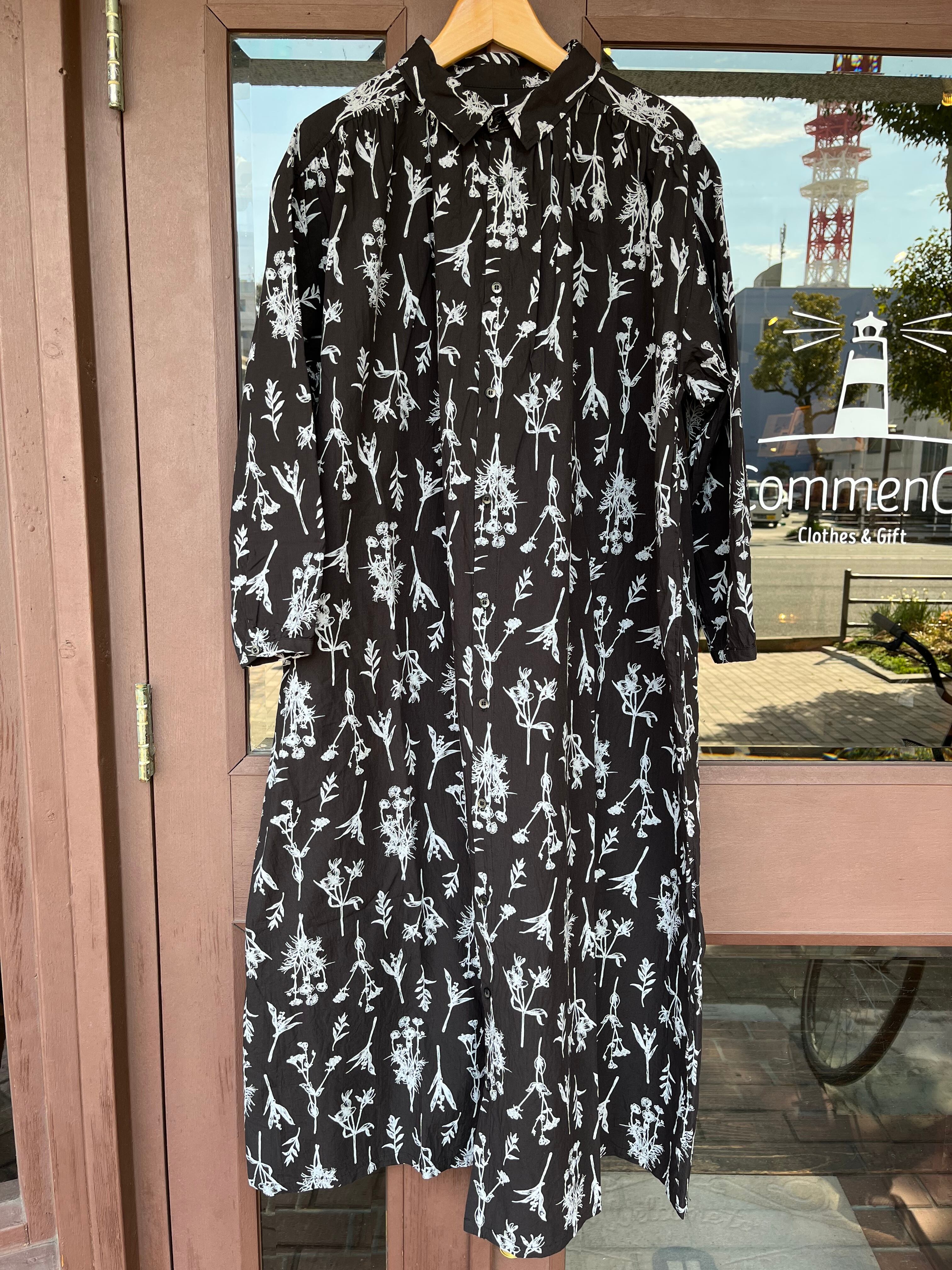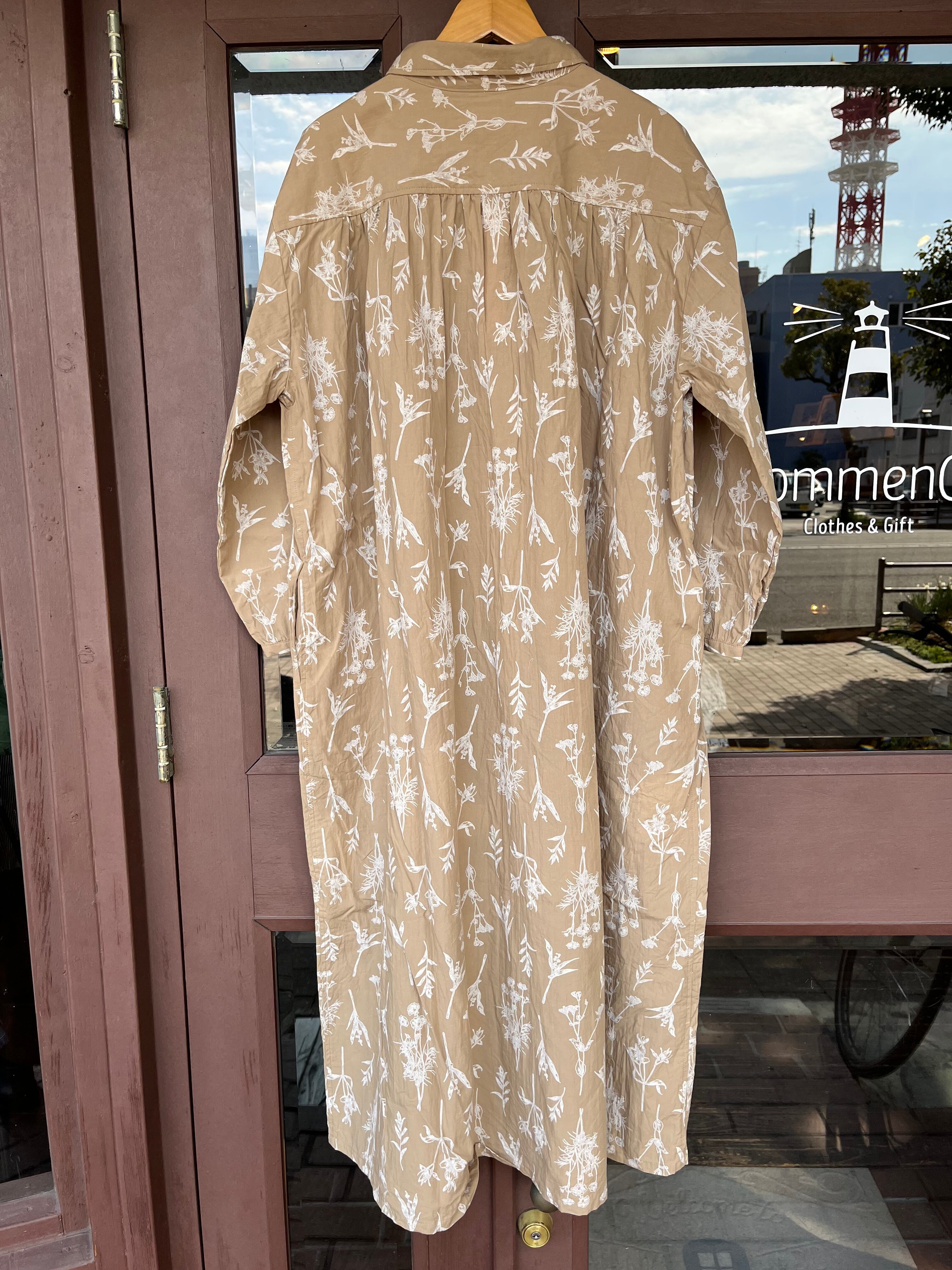 ボタニカルフラワー柄シャツワンピース(ichi)211005