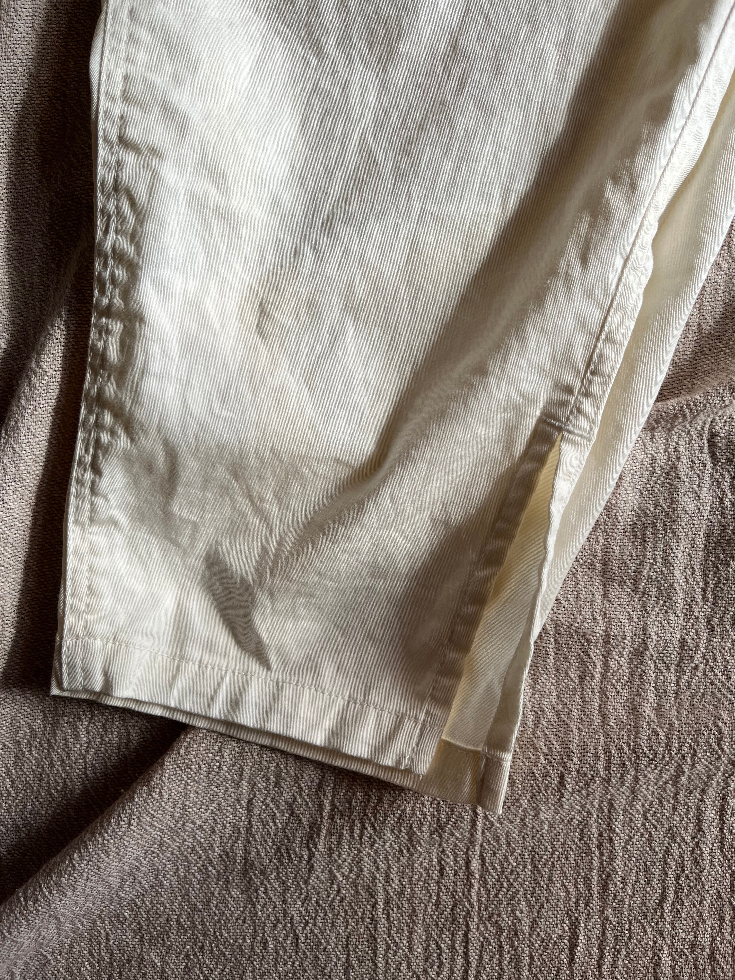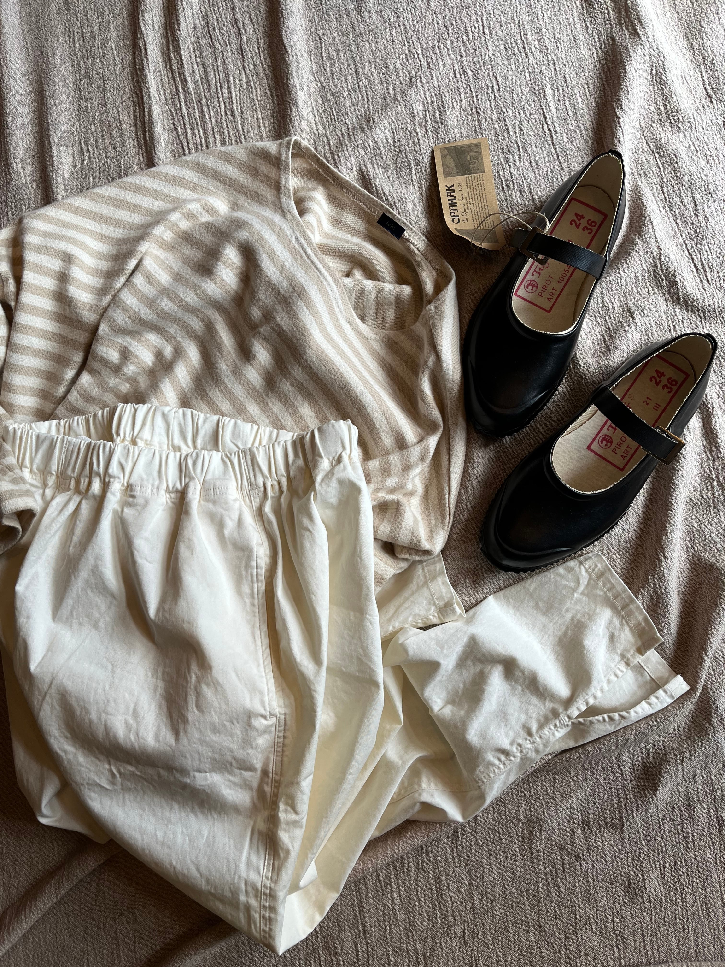 モノがたくさんあふれる時代だからこそ、モノを大切にしたい… 古き時代からあるモノ、自分たちの着続けたいモノをカタチにしました。 着て身体に馴染み、色あせていくことで自分らしい色に変わっていく服、 着続けることが喜びとなる服。 福岡での生活を拠点にして生み出されるデザインを、日本各地、世界で製造しています。 着て洗うことでテキスタイルの表情や風合いの変化を楽しめる1着。 生地の変化と同時に服が自分の身体のラインに馴染む心地よさも感じてください。