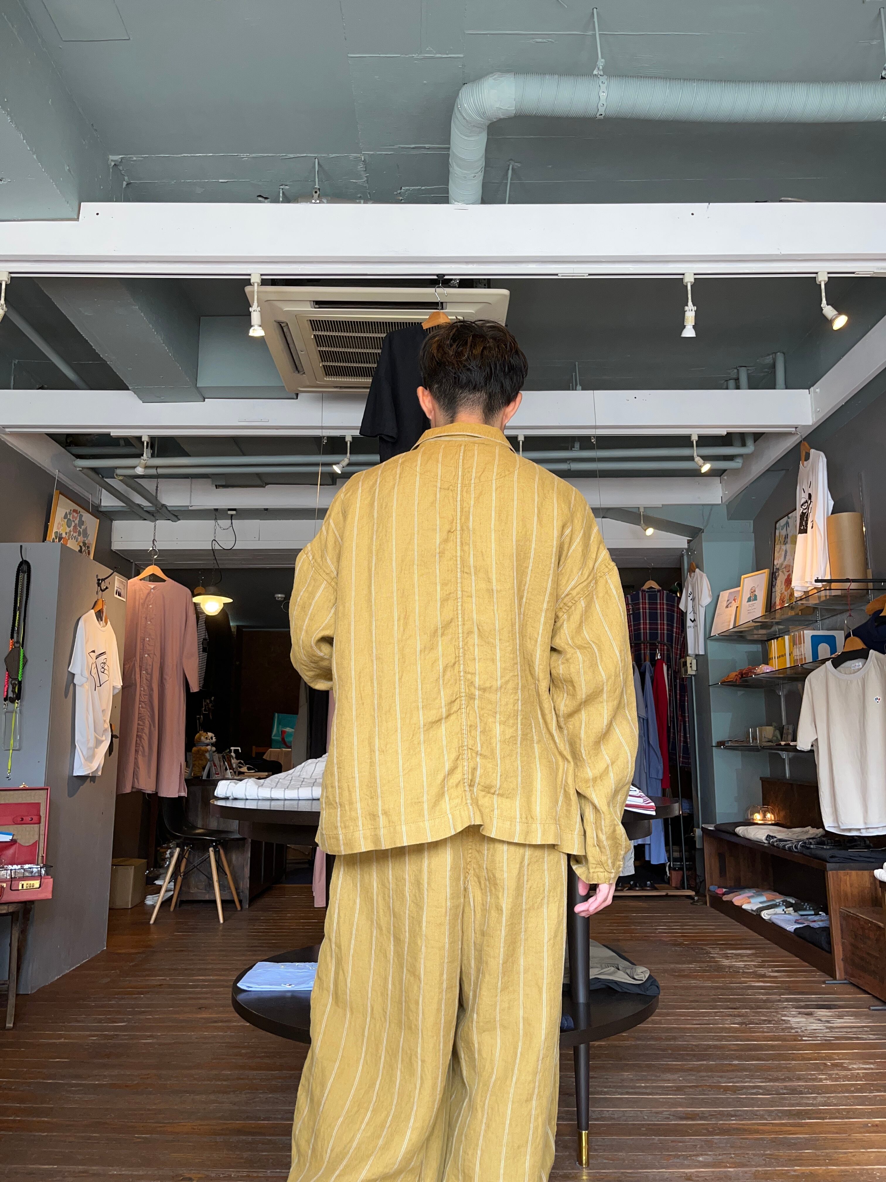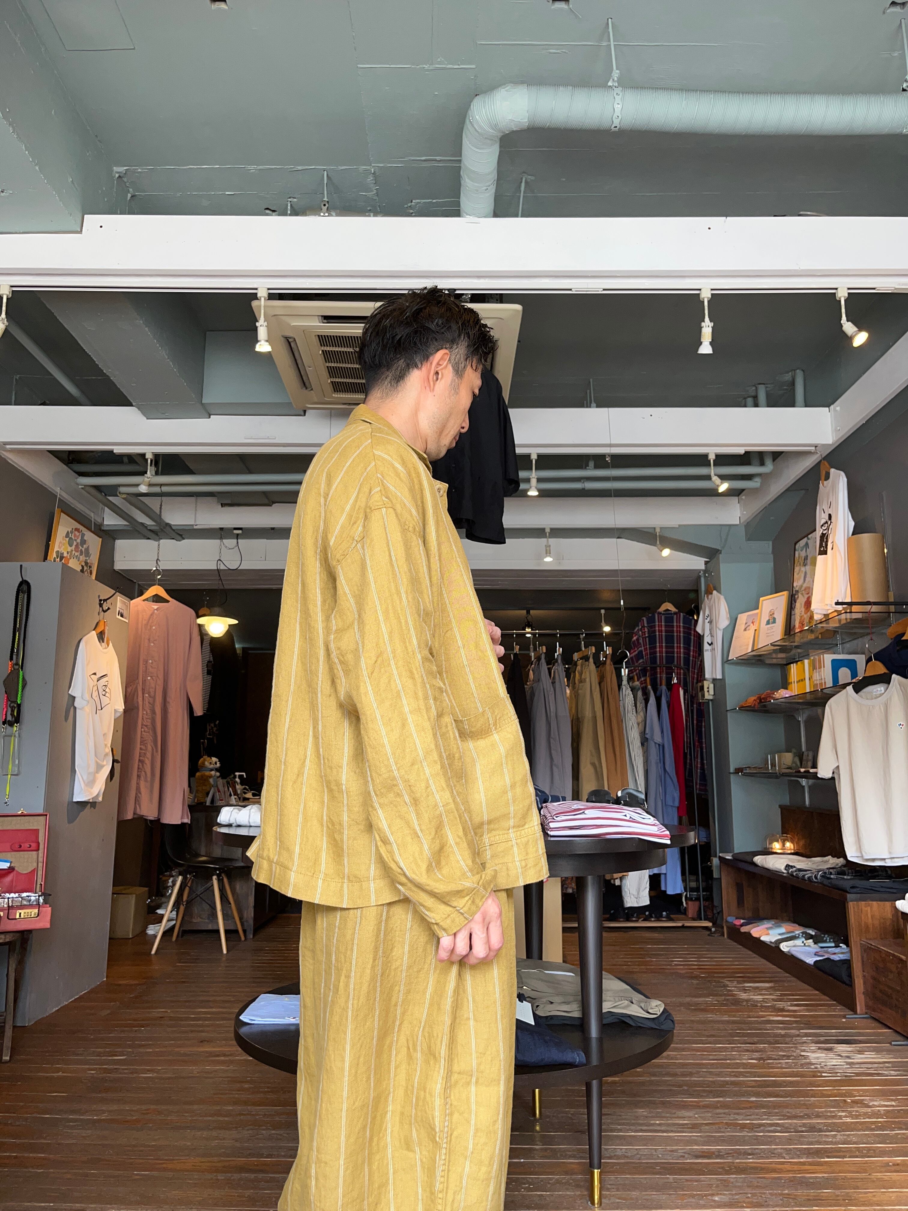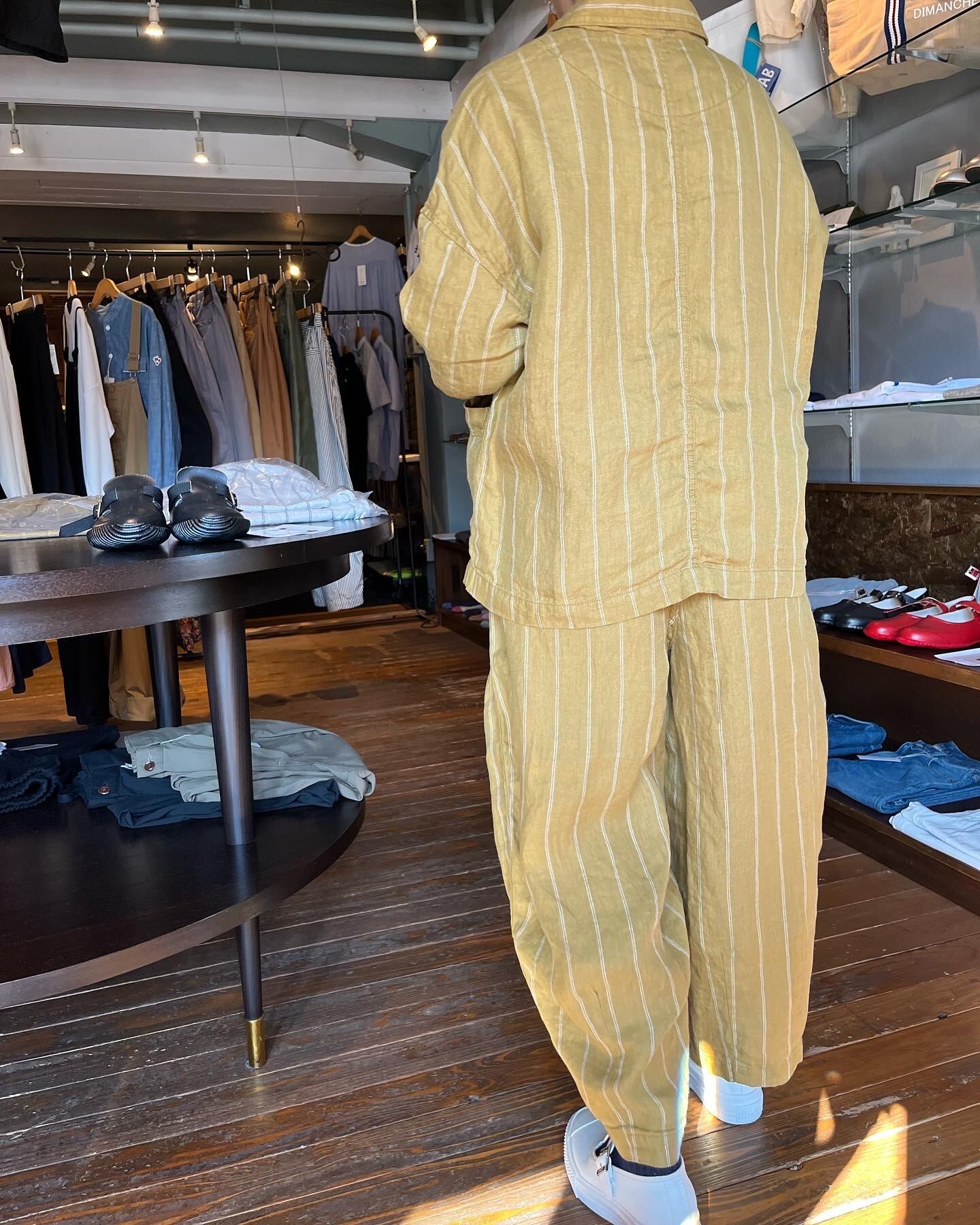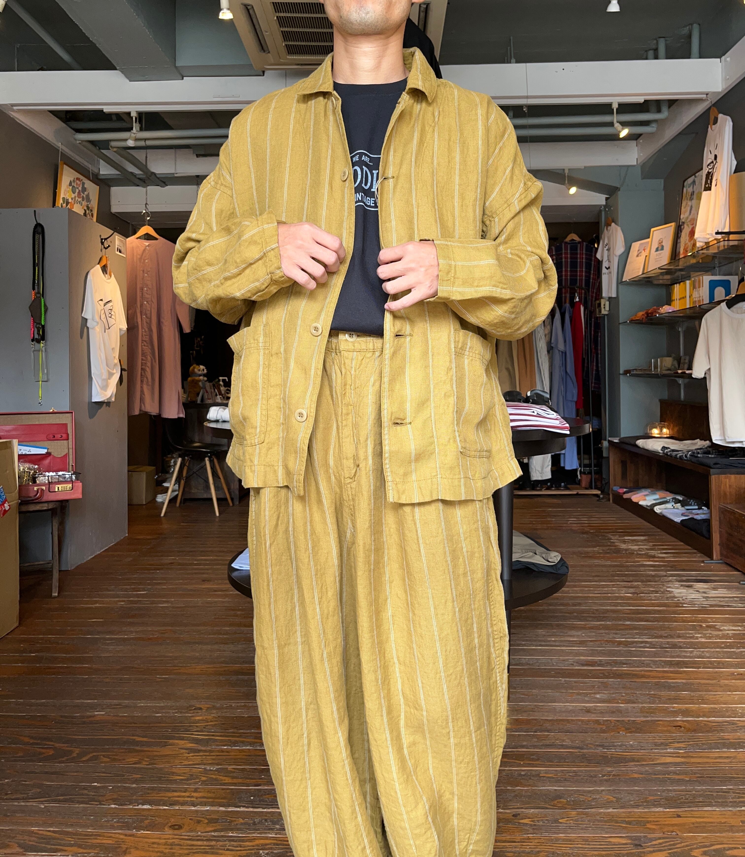リネンワーカーストライプショートカバーオール(HARVESTY)