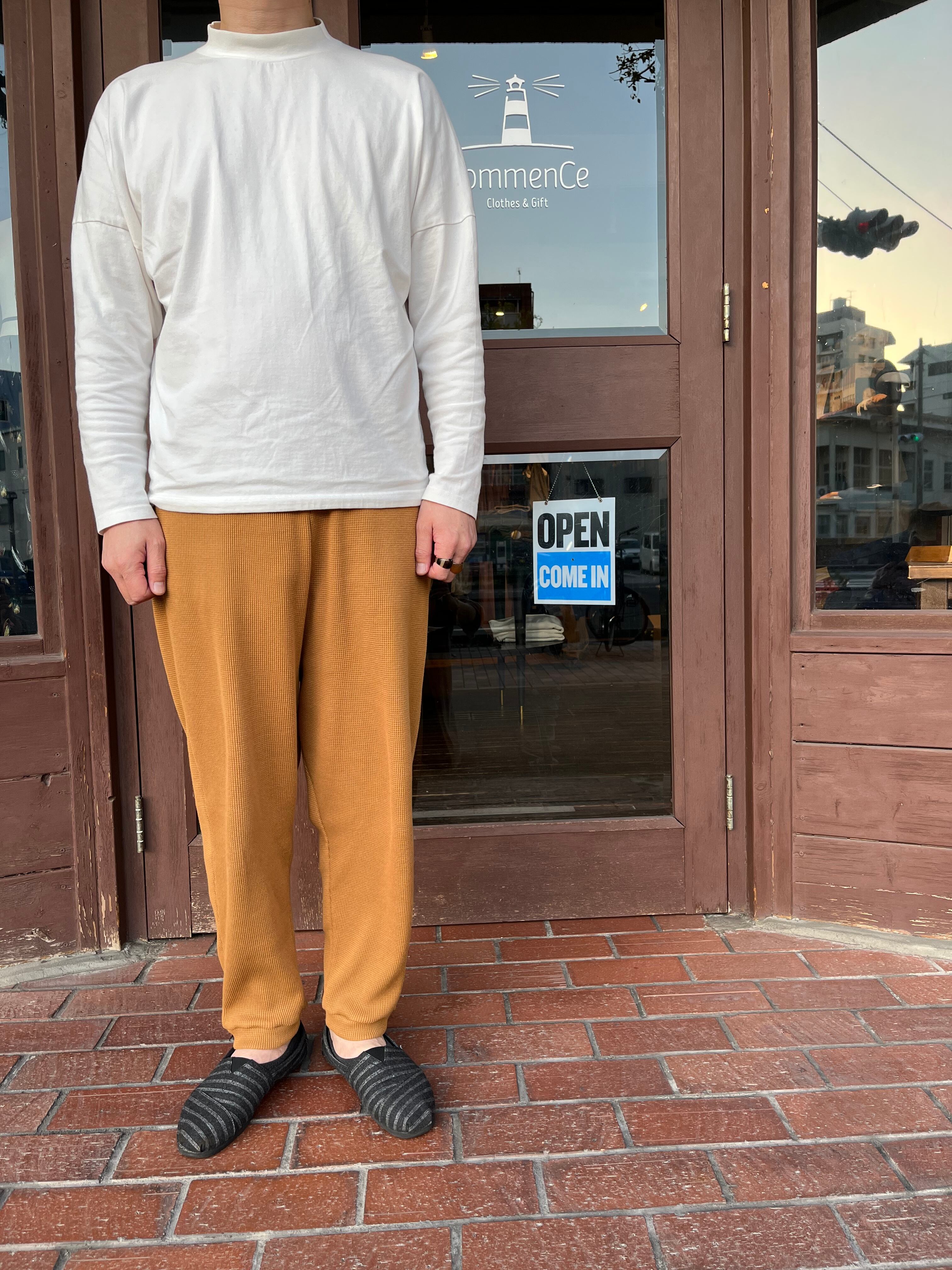 ウエスト、股上はゆったりと裾にかけてスッキリと細くなる綺麗なシルエット。リラックス感がありながらカジュアルになりすぎない絶妙なパンツです。