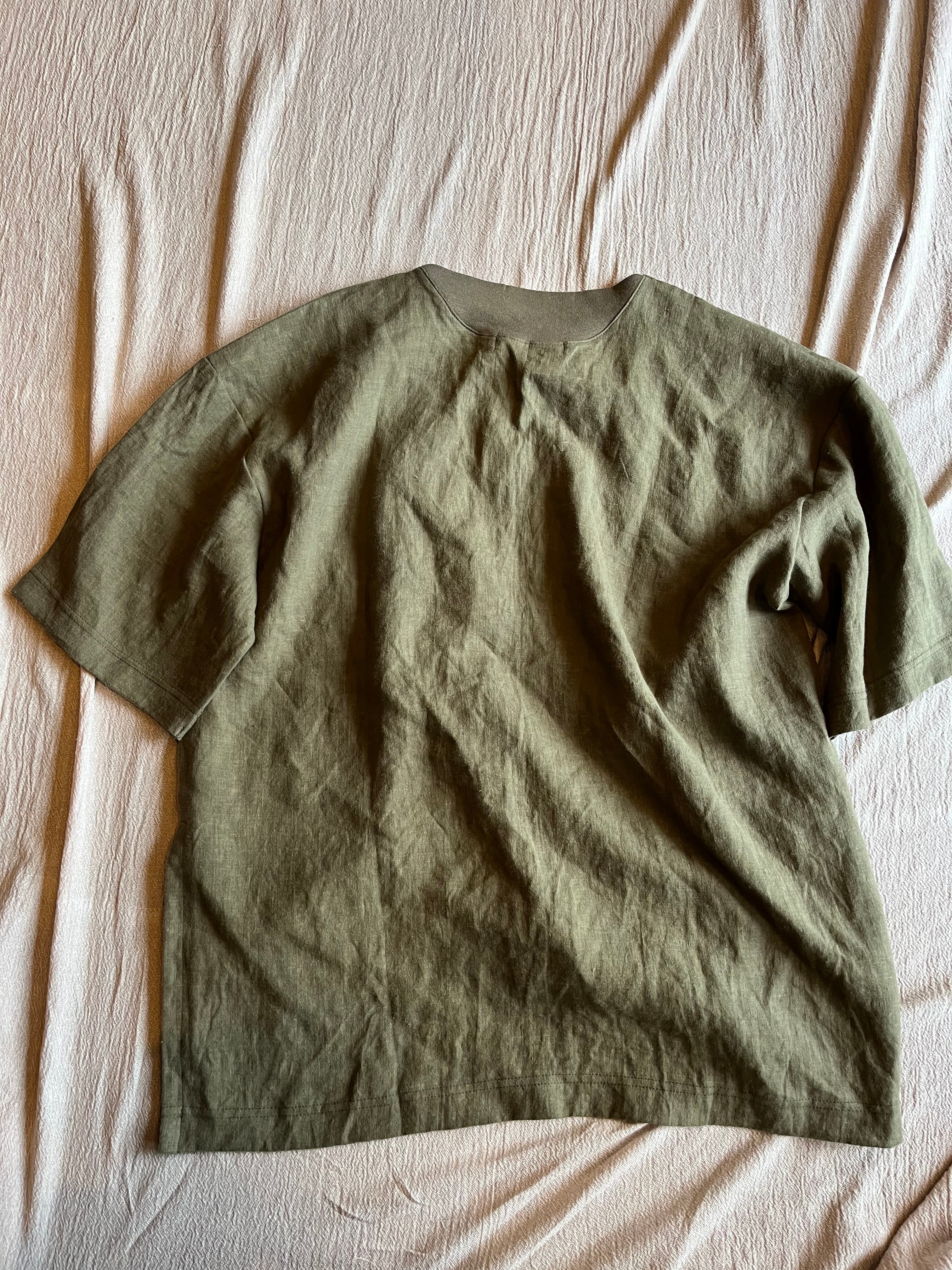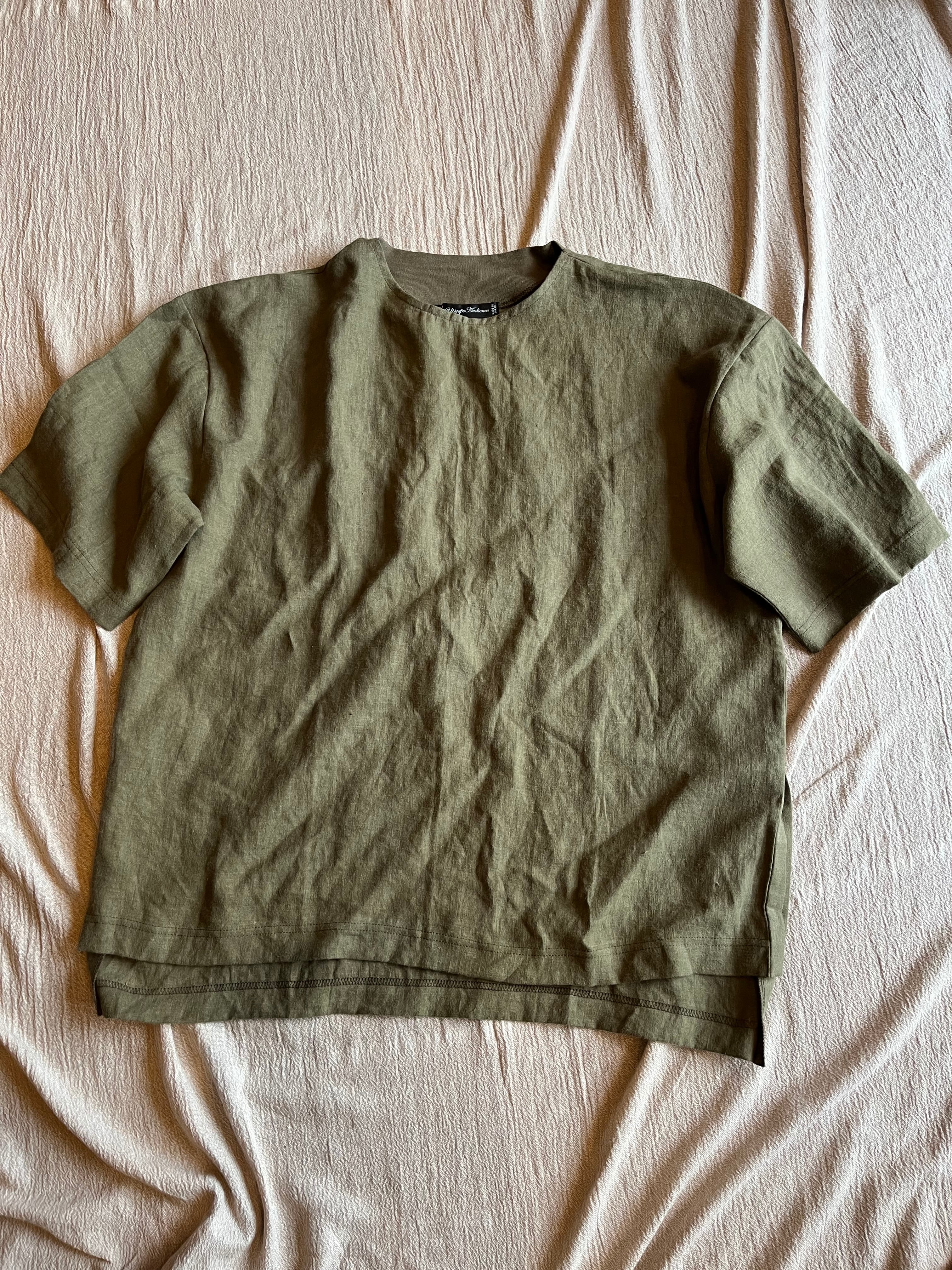 【再入荷】フレンチリネンサイドスリットハーフスリーブボクシーAラインフハクシャツ(Audience)