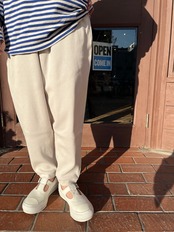 ウエスト、股上はゆったりと裾にかけてスッキリと細くなる綺麗なシルエット。リラックス感がありながらカジュアルになりすぎない絶妙なパンツです。