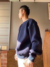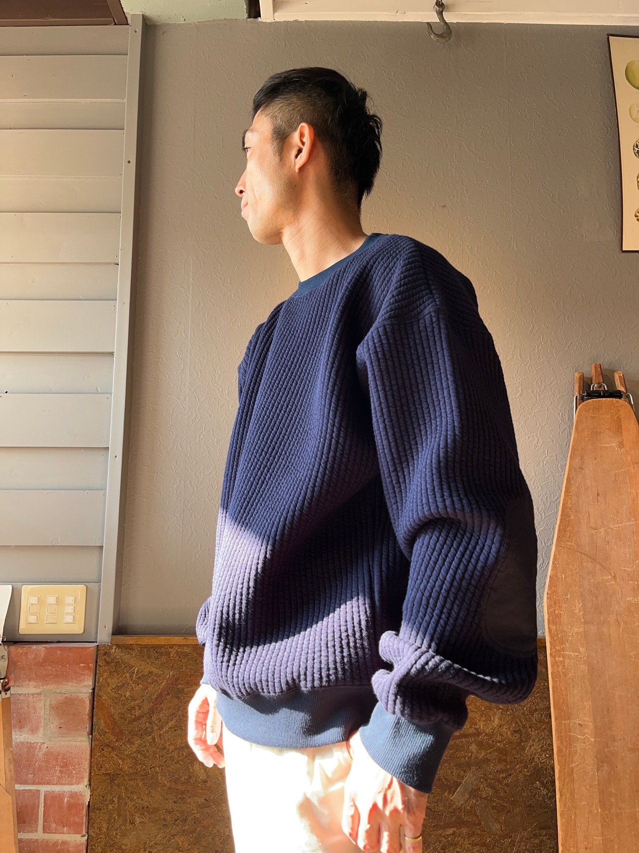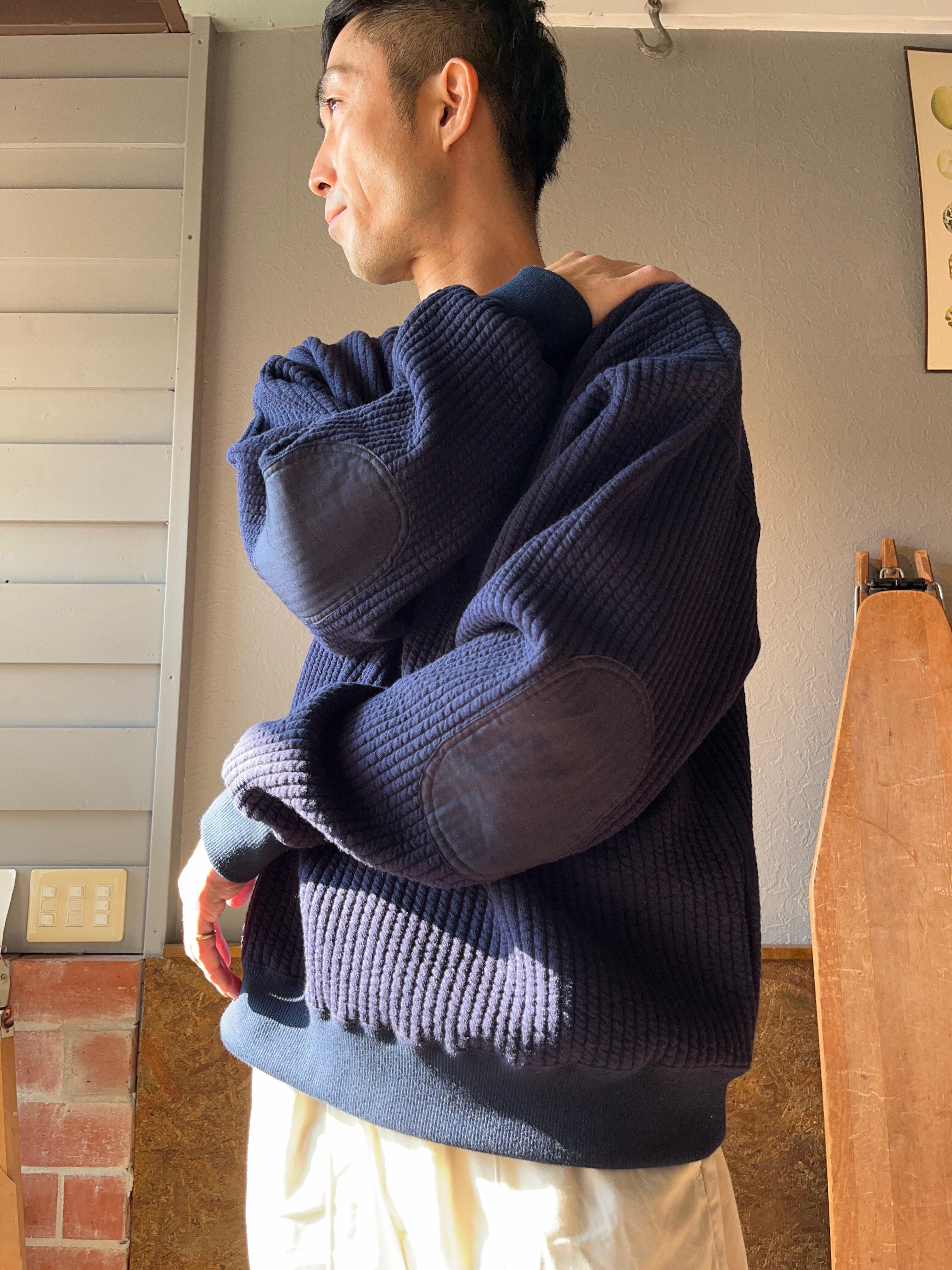 「尾州」コットンキルト エルボーパッチ クルーネック スウェット(Audience)