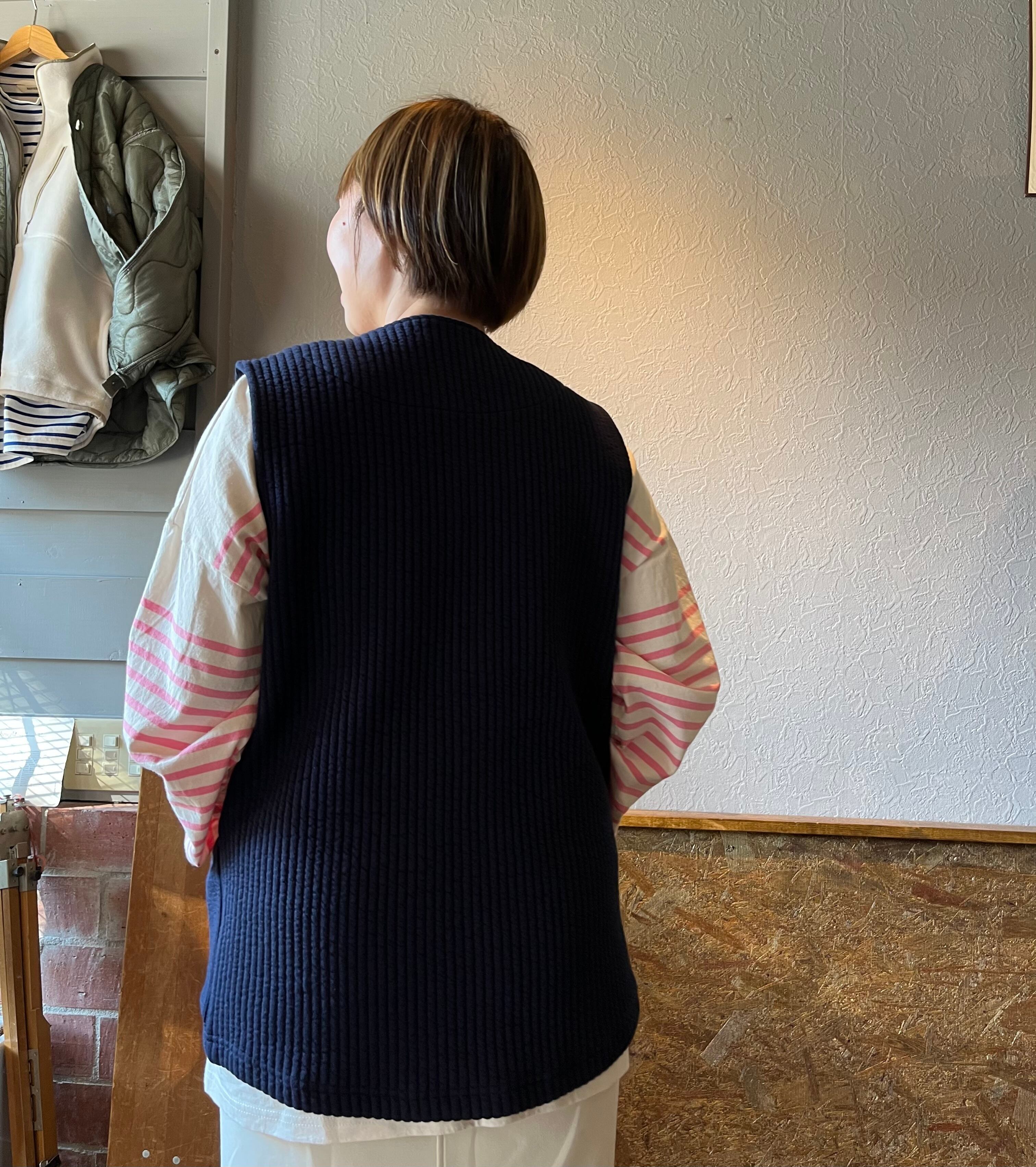 毎シーズン即完売するaudienceのコットンキルトノーカラースナップベスト。