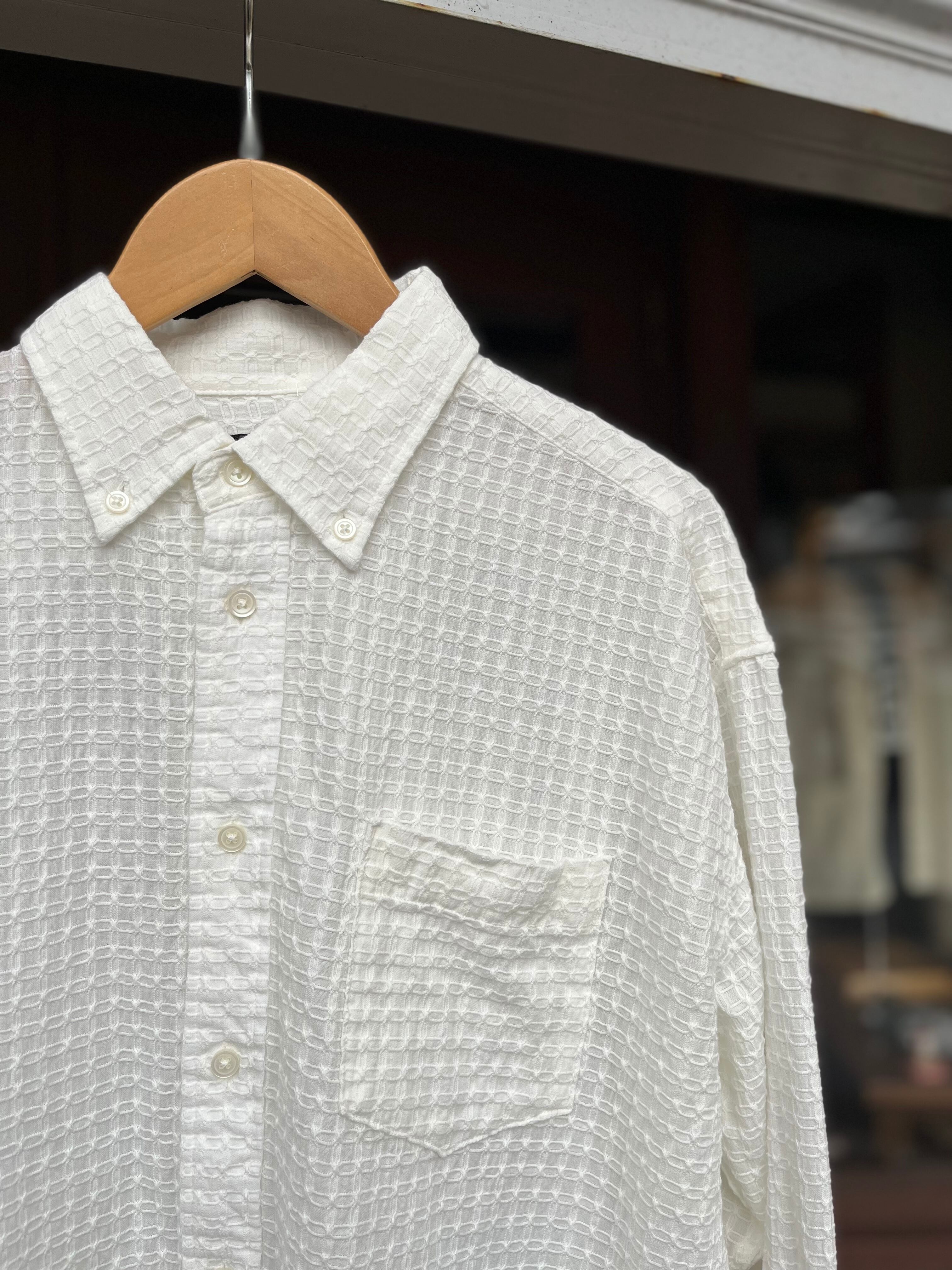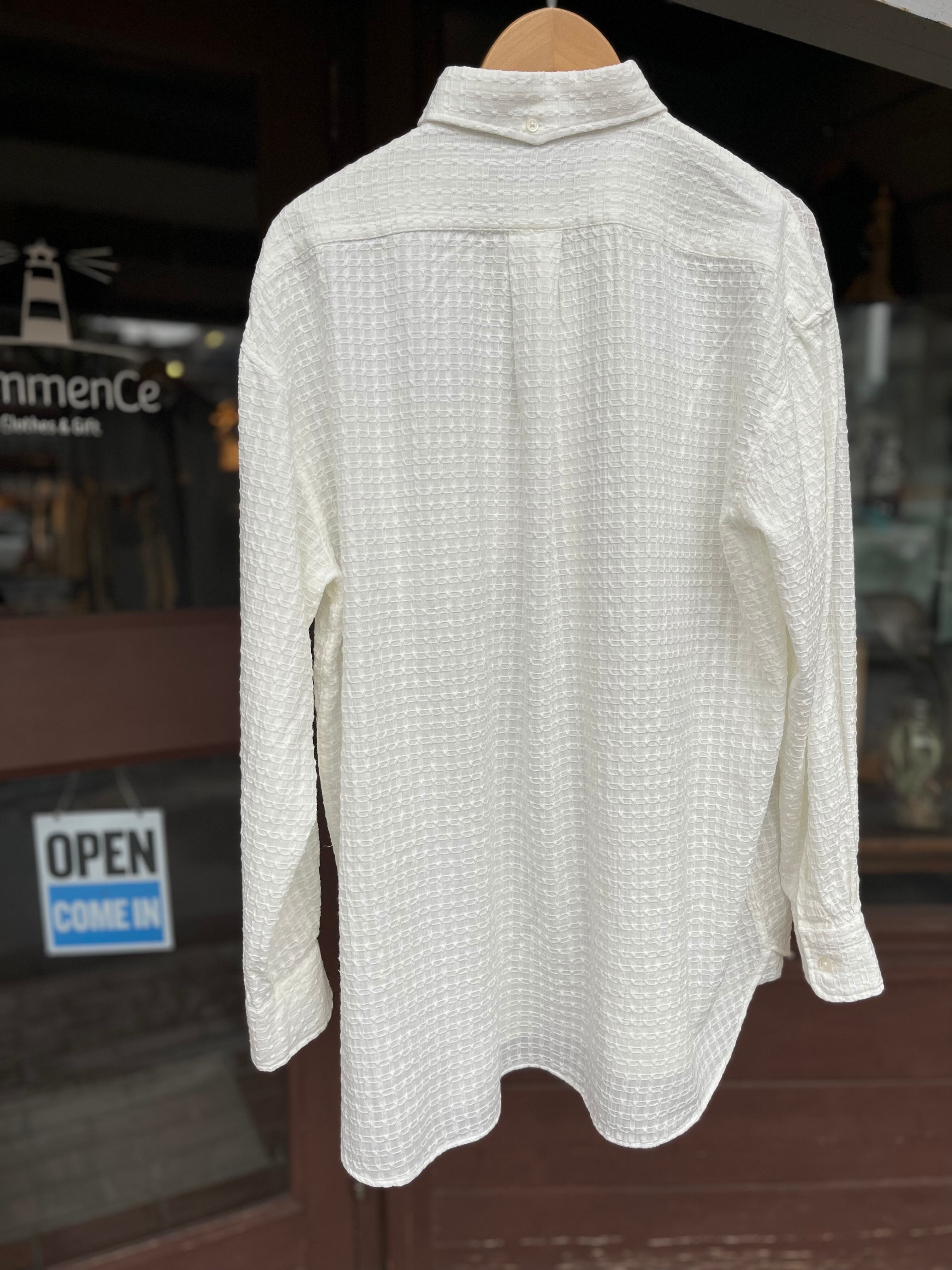レノクロス(からみ織)ボタンダウンボクシーAライン長袖シャツ(Audience)