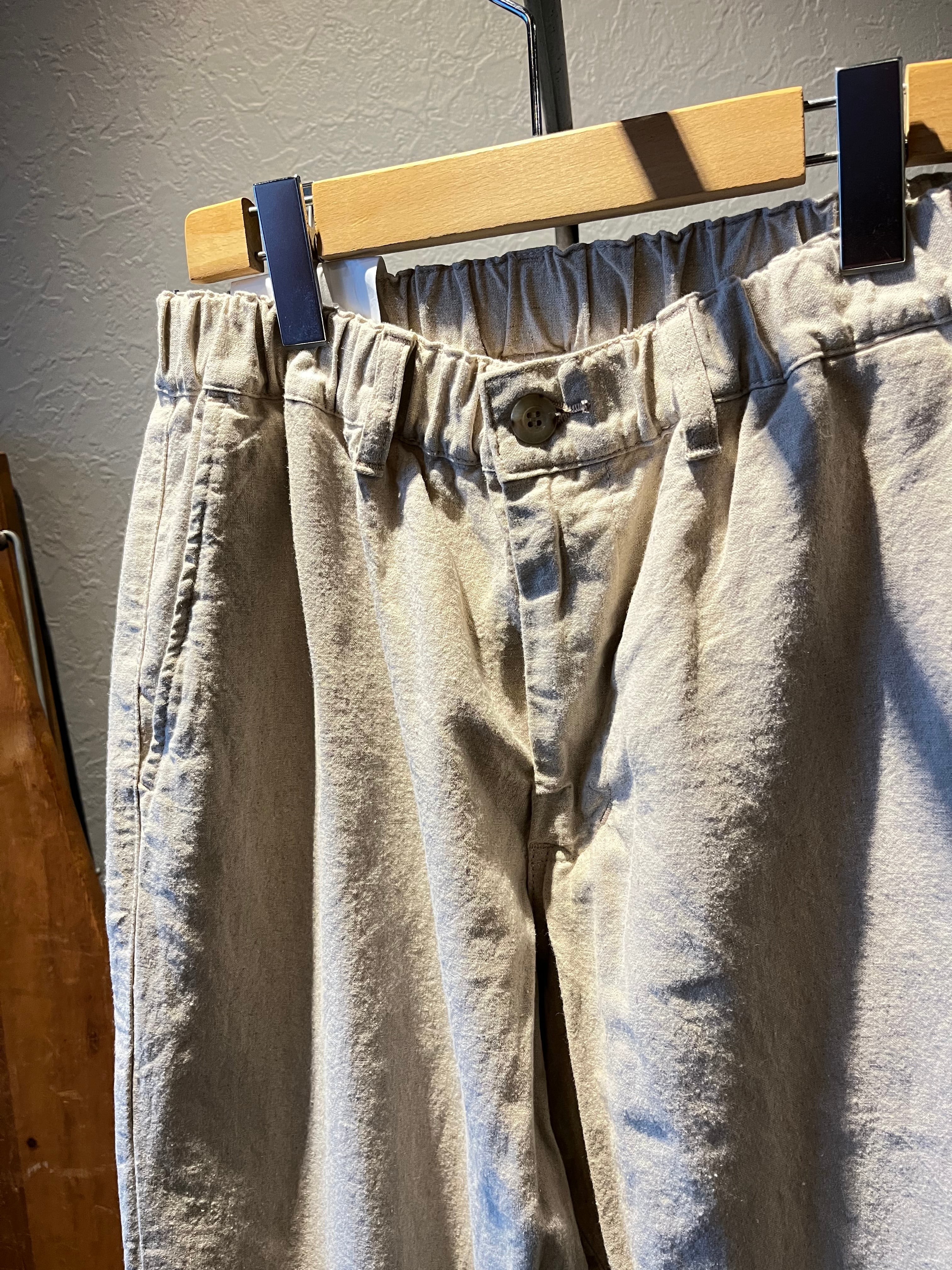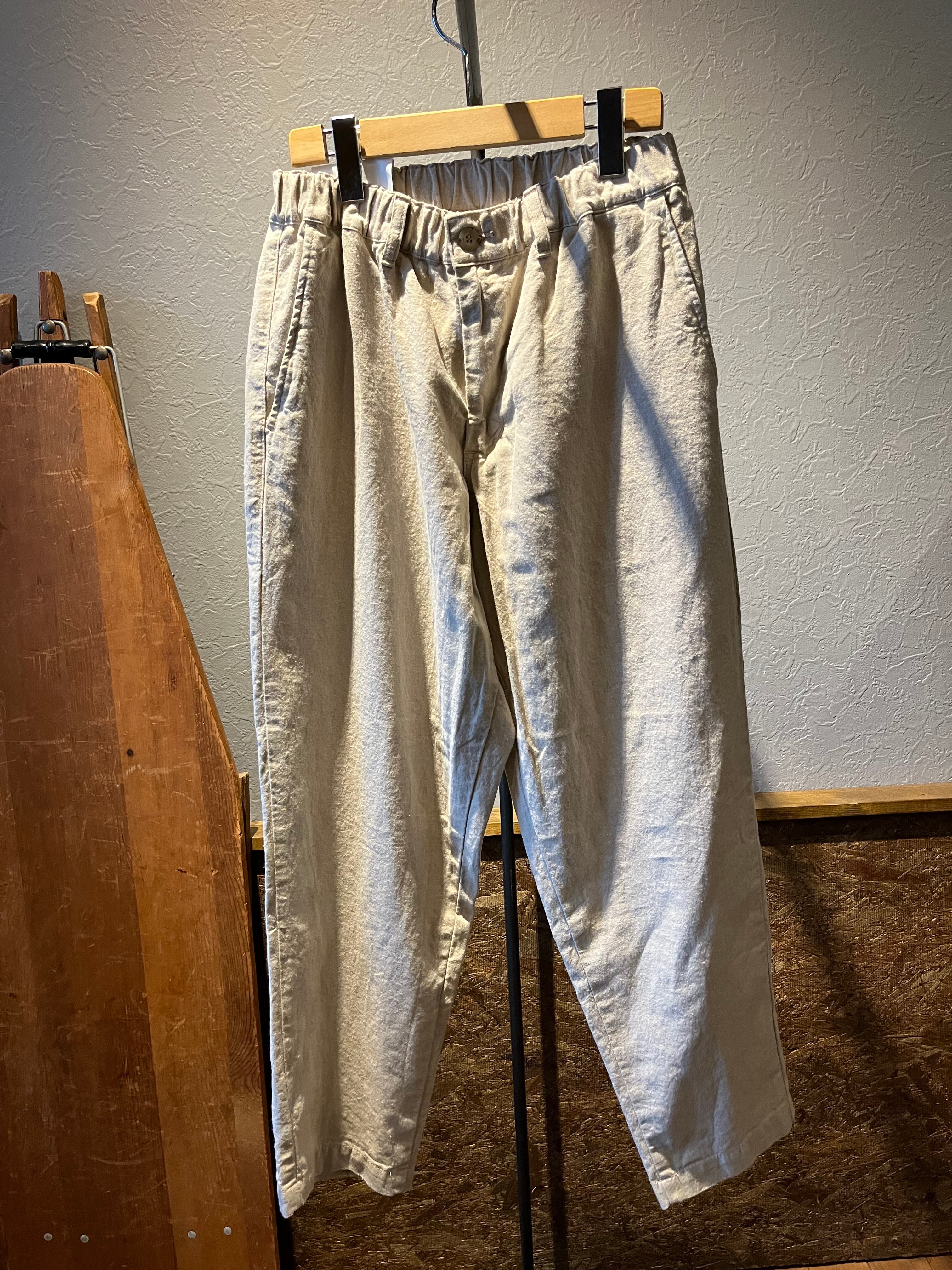 ワイドパンツすぎない絶妙なシルエット。日本製に拘った素材使い丁寧な縫製でありながらお手頃な価格も魅力的なペダルパンツからリネンタイプが入荷してきました。