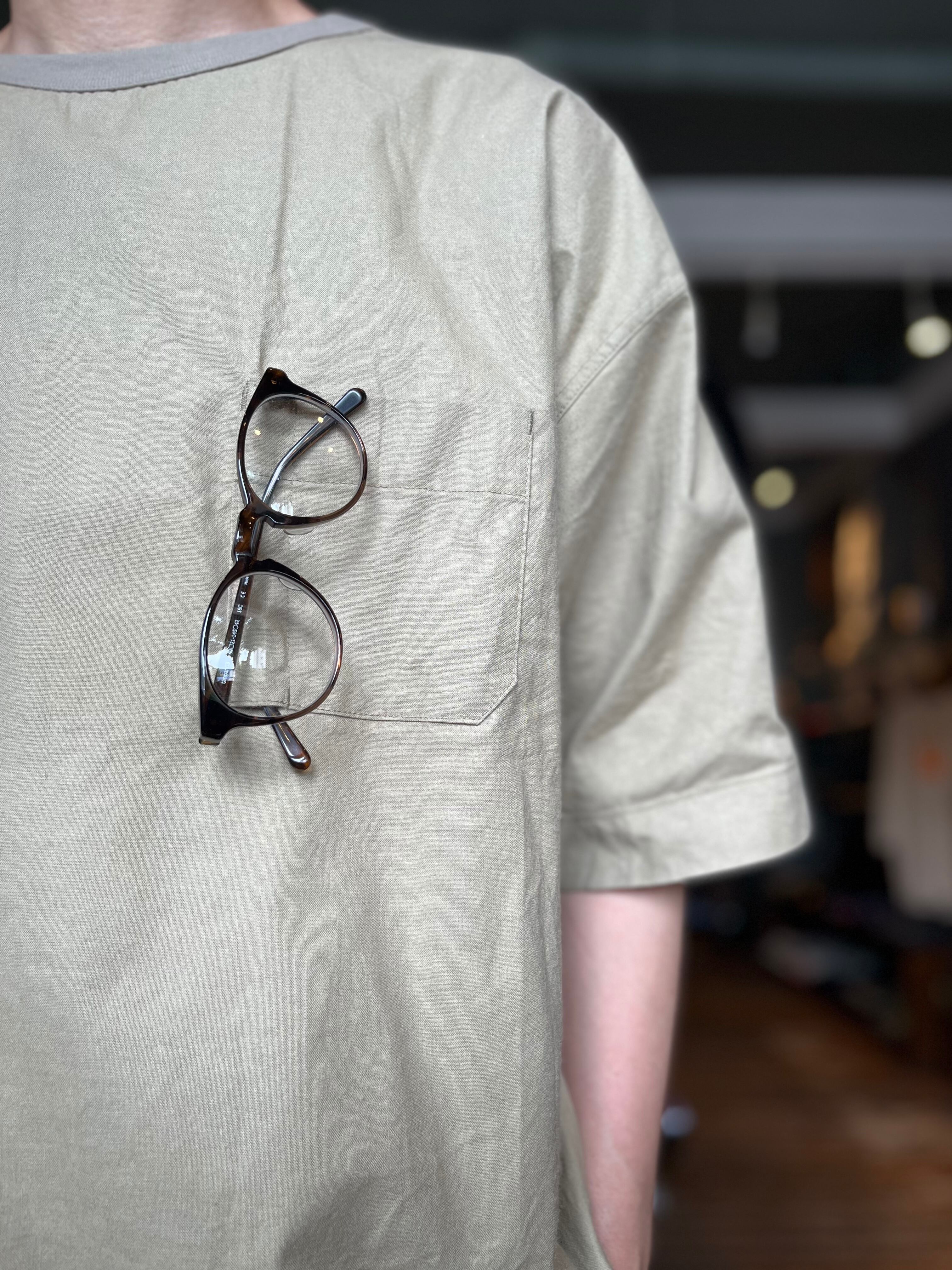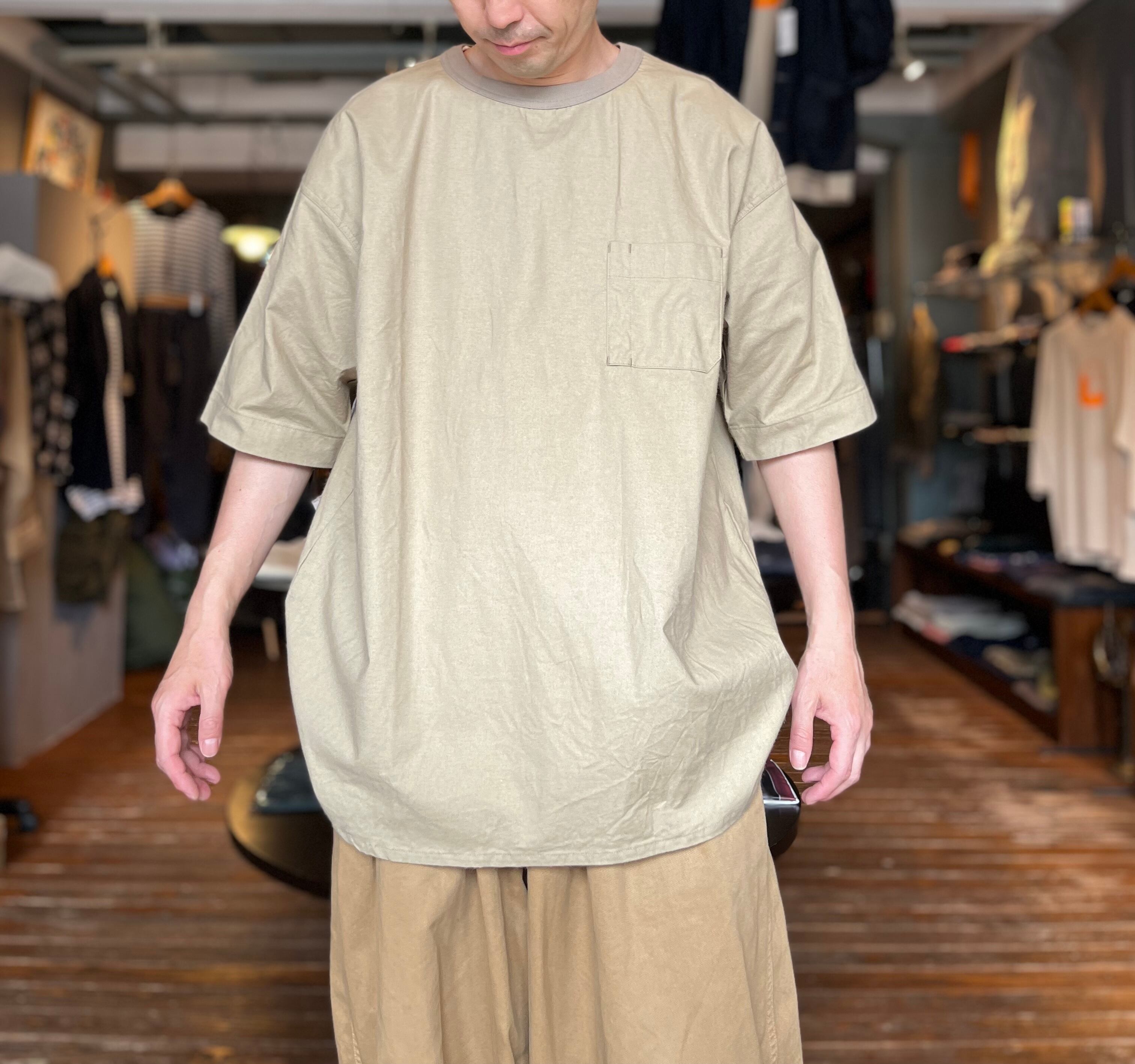 コットンシーチングワッシャークルーネックグラスポケットハーフスリーブシャツ(Audience)