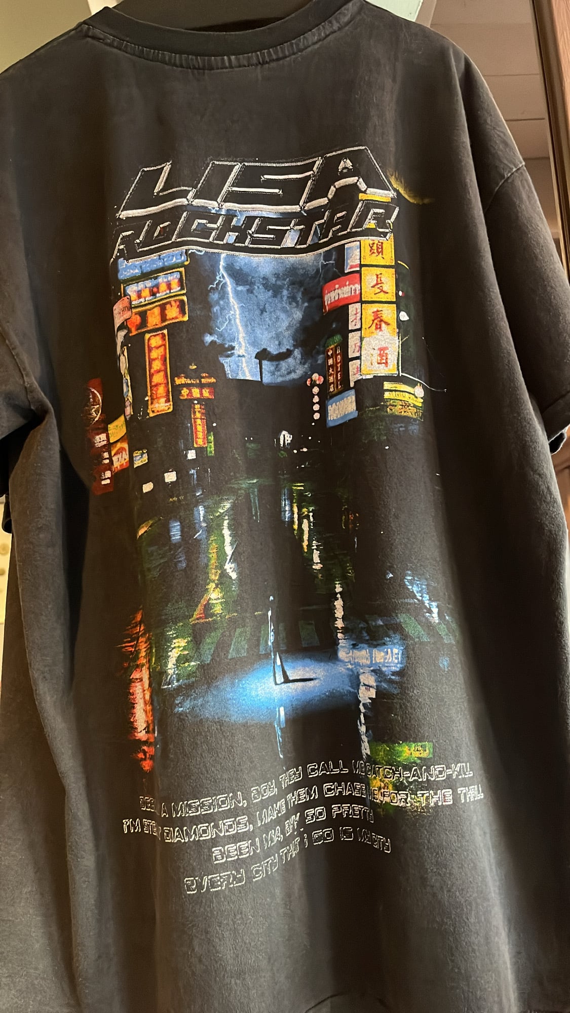 世界的ガールズ・グループ=BLACKPINKのメンバー、LISAのソロシングル「ROCKSTAR」Tシャツ。国内ではプリントが難しい大判のシルクスクリーンプリント。