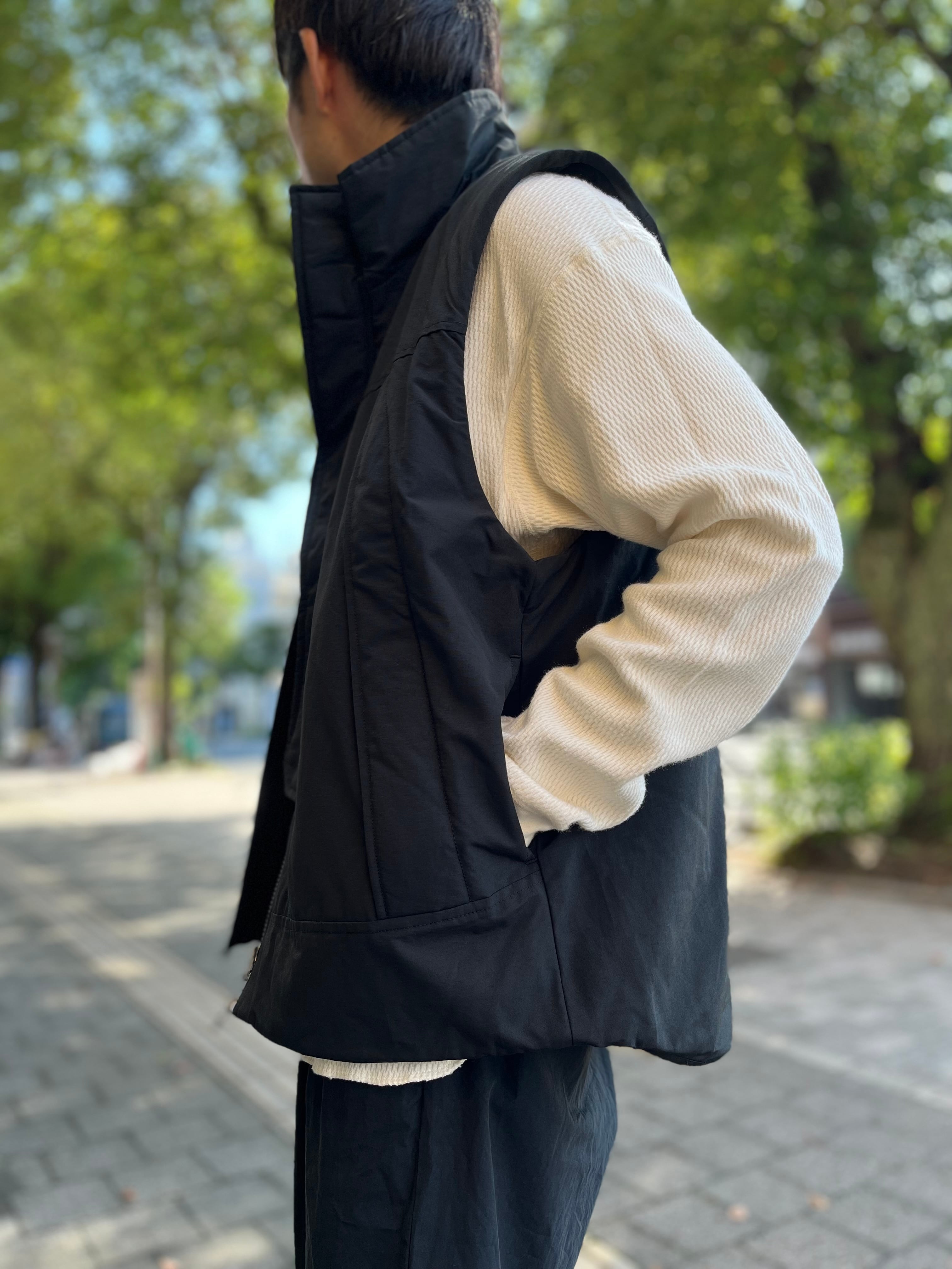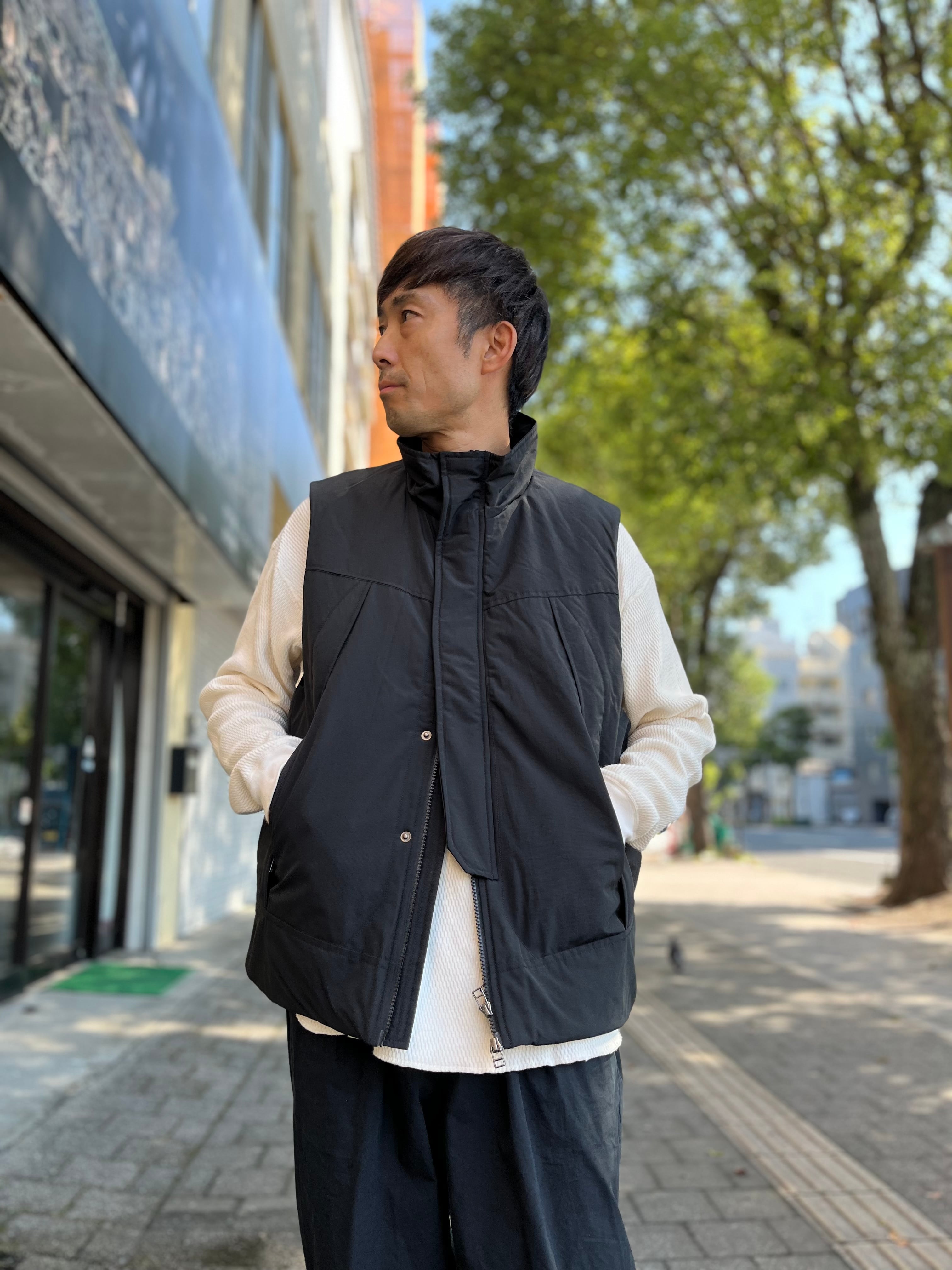 斜めに取り付けられたフロントポケットやフロントジップの前立てなどしっかりと作り込まれたディテールに今の時代にフィットするサイズ感がAudienceらしいベストに。
