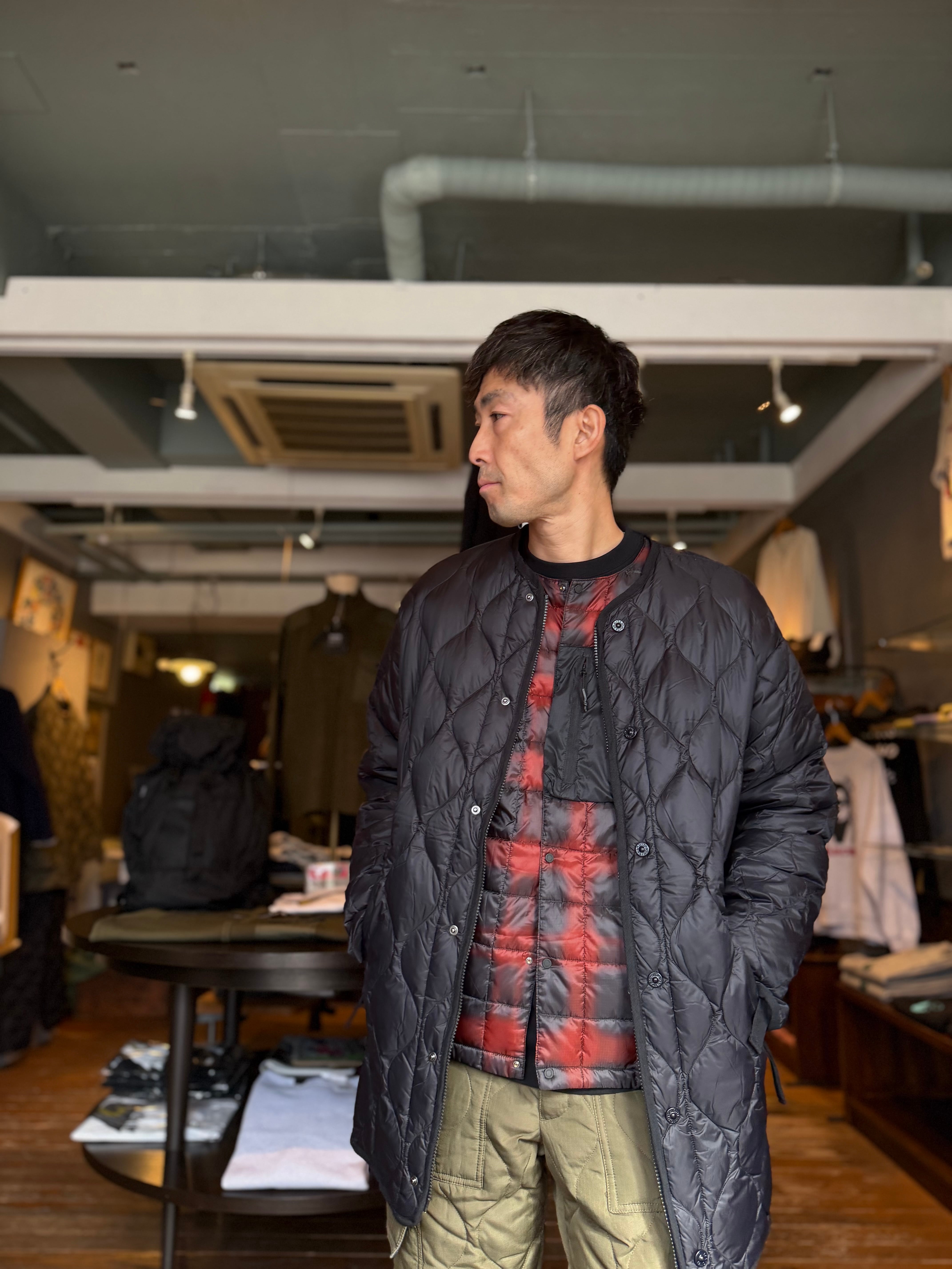TAION刻印入りの細かい金属ボタンやファスナーポイントなどディテール満載なダウンジャケットです。コンパクトな作りでM.L 2サイズ仕入れました。