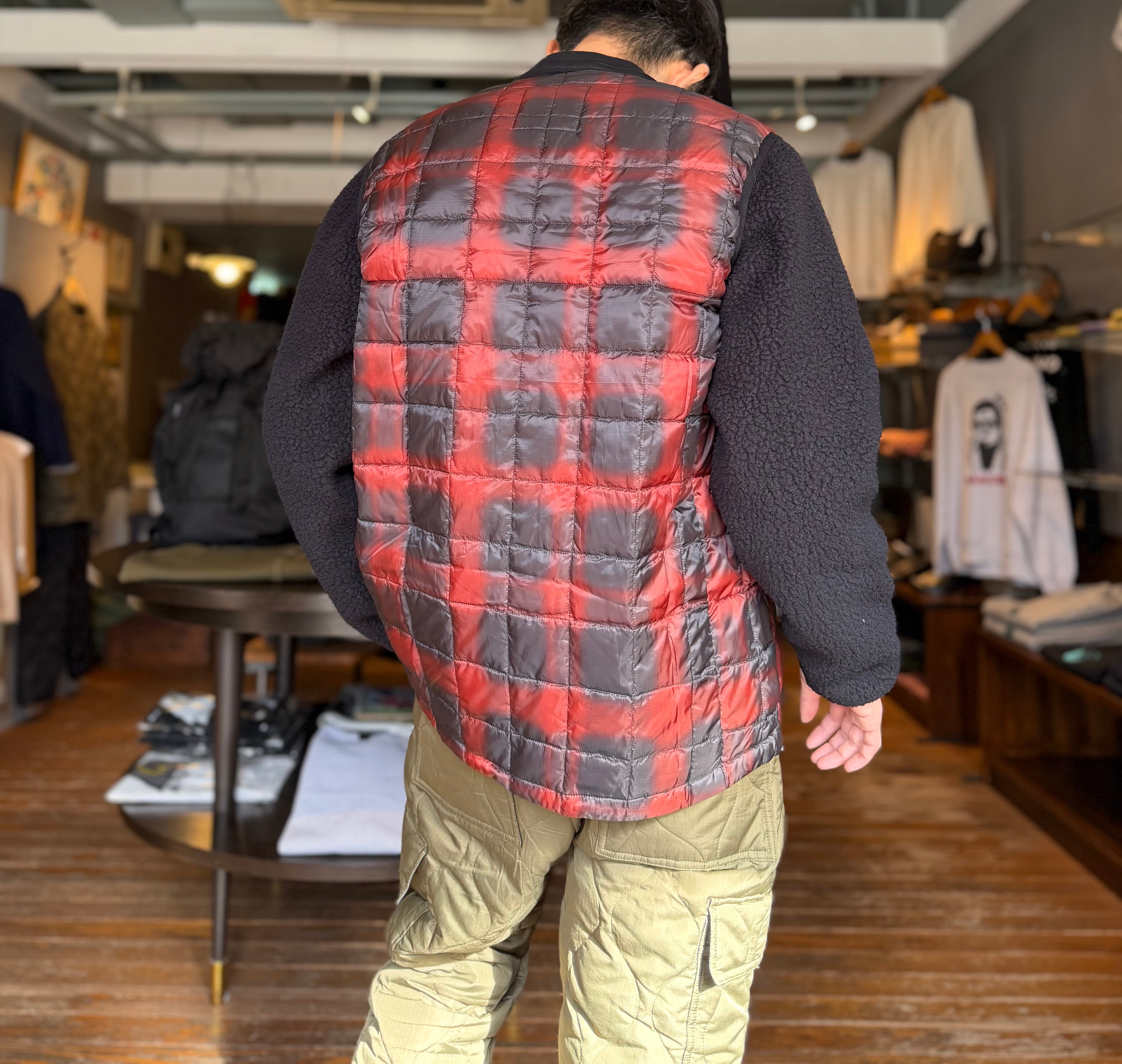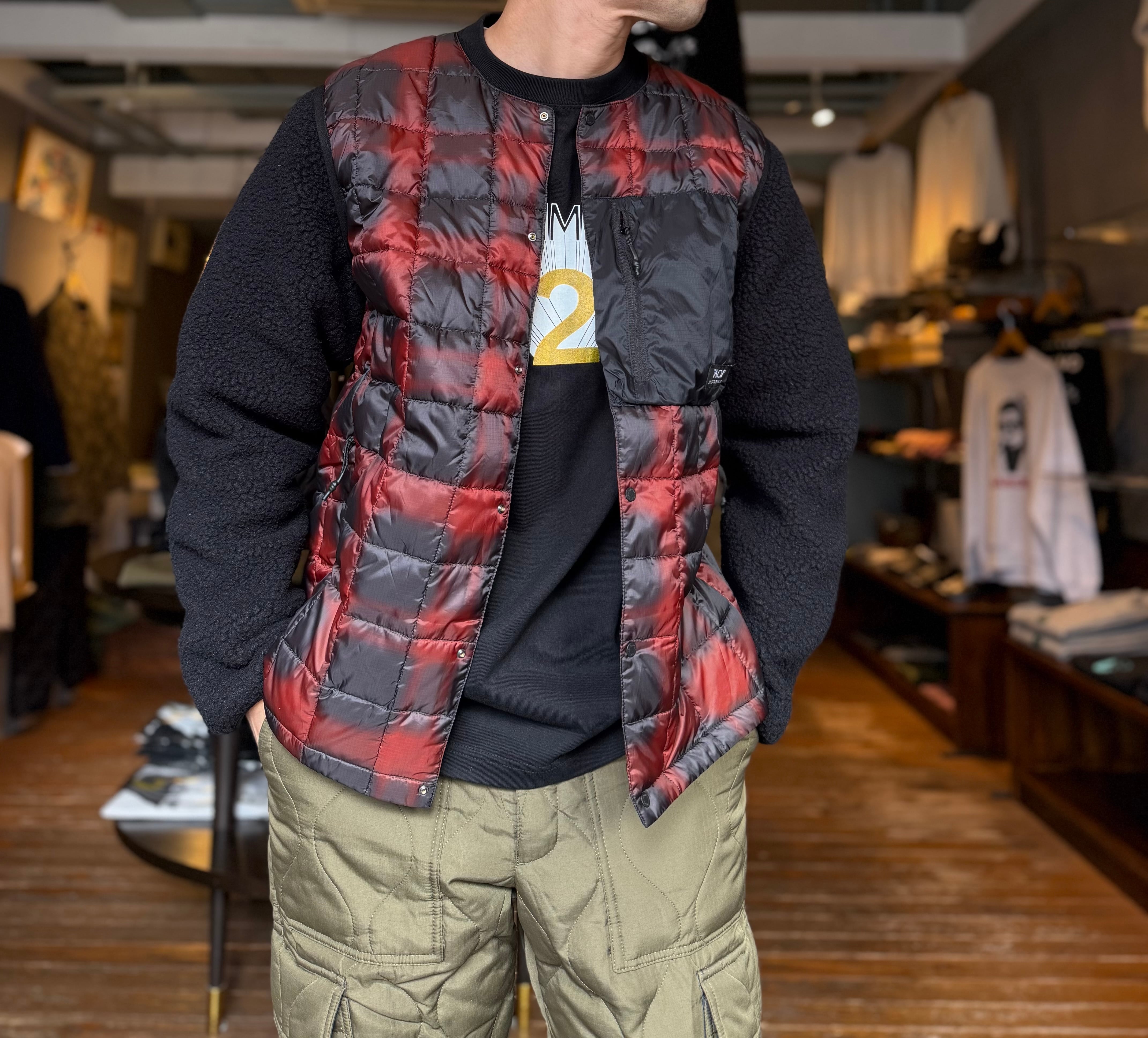 TAION/マウンテンクルーネックライトダウンジャケット/チェック×ブラック